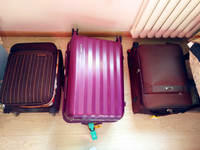 下面的三个小箱子就是我们的行李啦~基本上左右两个重量在10公斤左右,都是可以放上飞机的尺寸,中间的那个略大一点,重量在13公斤~给大家做个参考~