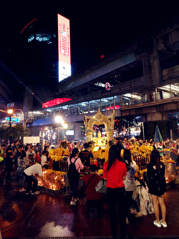 饭后跟着谷歌导航到了四面佛,大约一站地的距离~很多人在跪拜许愿,据说四面佛非常灵验,许过愿都是要来还的,我就看看好了~