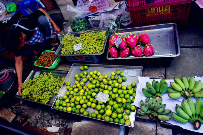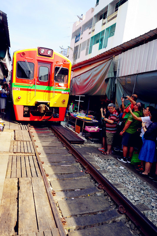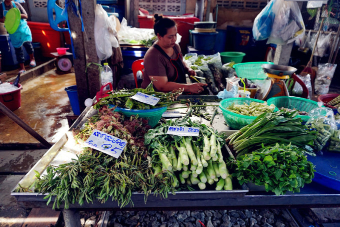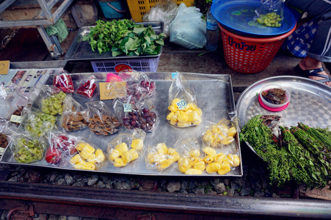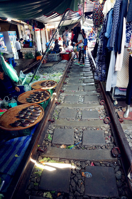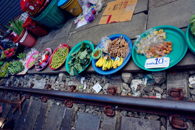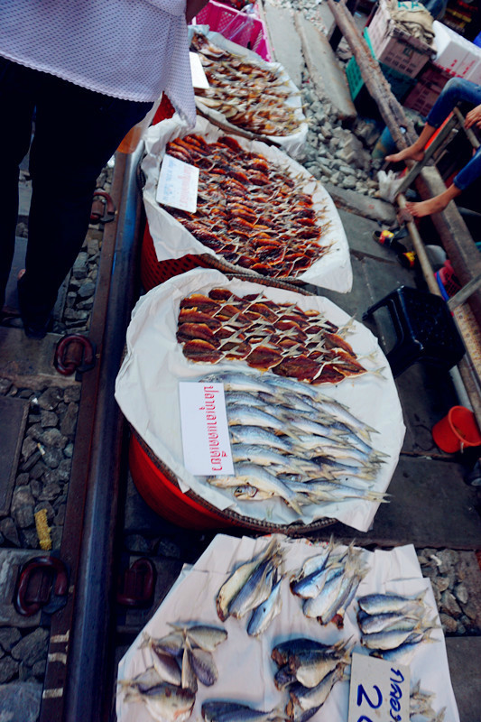 在北京饭店还是什么的饭店里吃了简单的午餐后出发去美功铁道市场(网上各种攻略说可以在胜利纪念碑坐小巴,小伙伴可以尝试)大概不到两小时后到达,在铁道市场各种游荡,很多国人,大家都顶着炎炎烈日等看小火车经过,小贩们大概也已经习惯了每天两三次的收摊摆摊,也算是种表演~