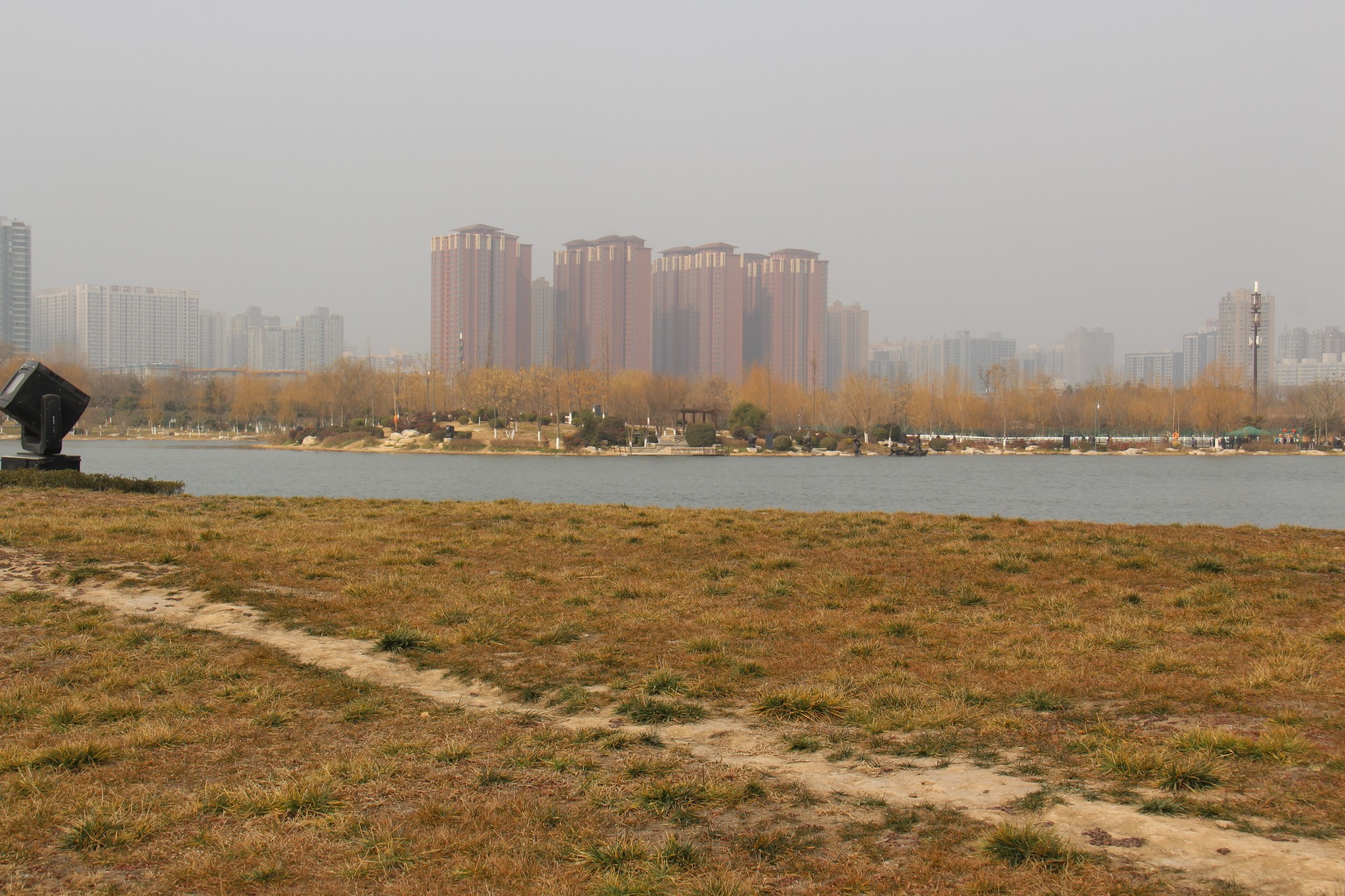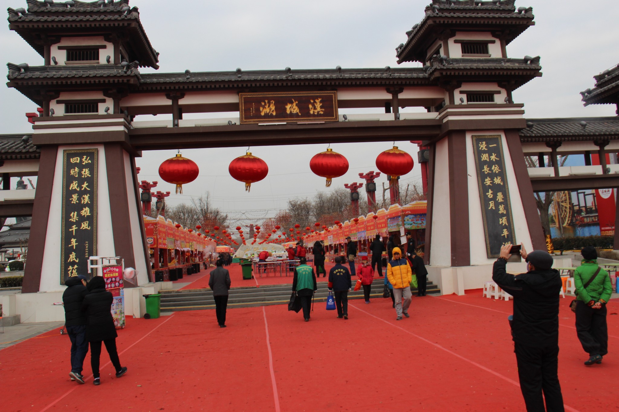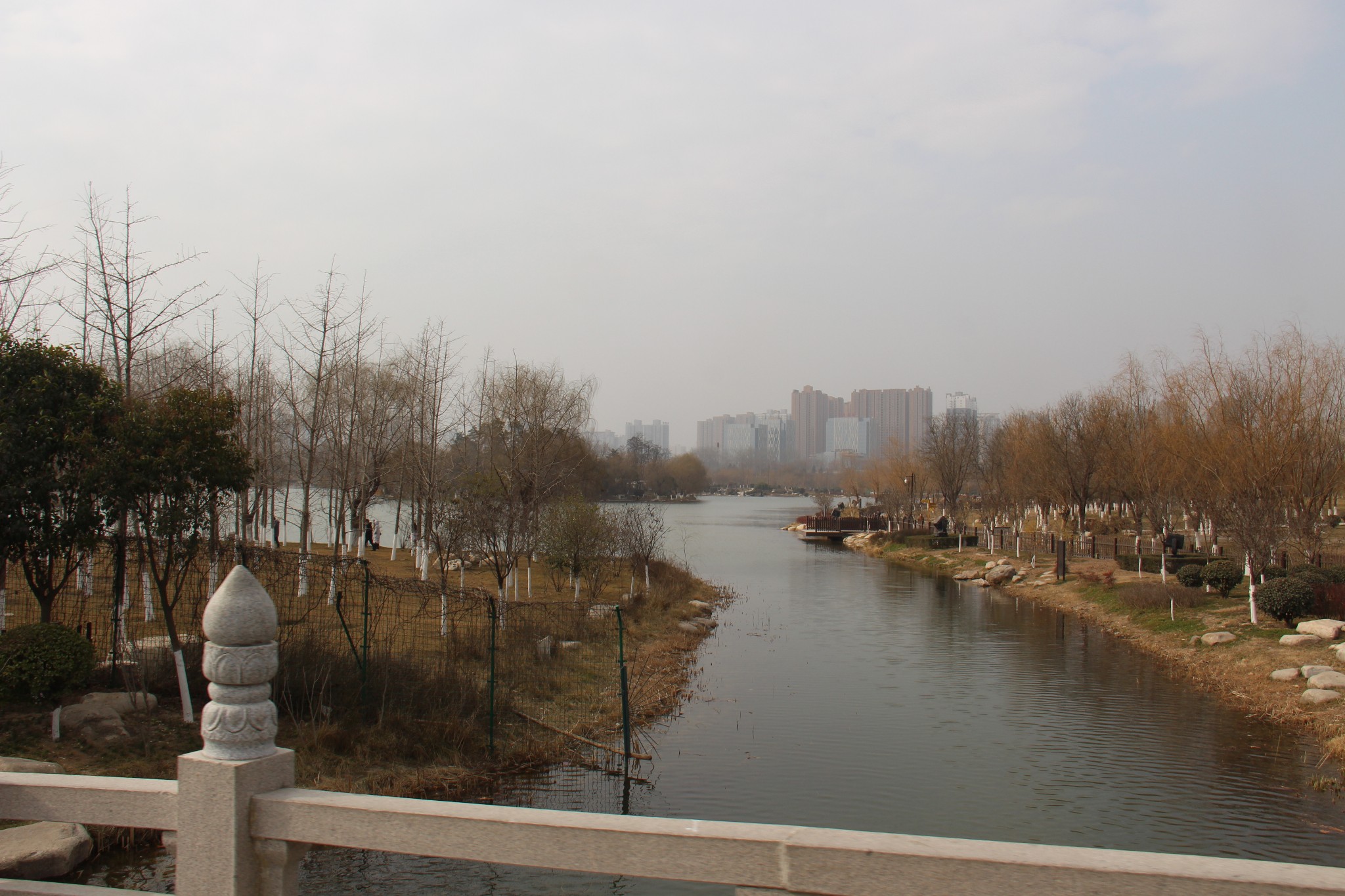 1月30日早上,结束咸阳的游览,坐着咸阳严师傅开的网约车,来到西安市。参观的第一站是到大明宫路上的汉城湖公园。这个公园免费开放,建在西汉长安城的长乐宫遗址上,原先我还抱有一点期望,但是进入以后看到沿街的大排档和嘈杂的歌声,觉得环境脏乱差,匆匆拍了几张就离开了。