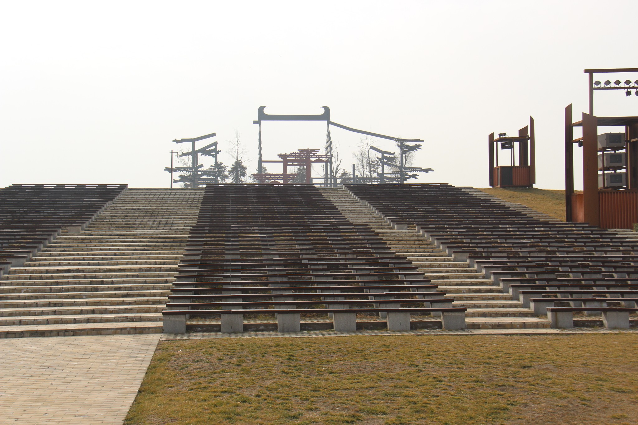 在汉城公园里逛了10分钟后,坐上严师傅开的车,去之前我一直神往的大明宫。严师傅居然说他经常来西安,从未去过大明宫,他对历史文化景点不感兴趣。所以为了找到大明宫正门的景区入口,虽然有导航,他也是问了好几个人,才找到。然后他把我带到以后,自己就在车里看电视听广播,也不下来一同参观。