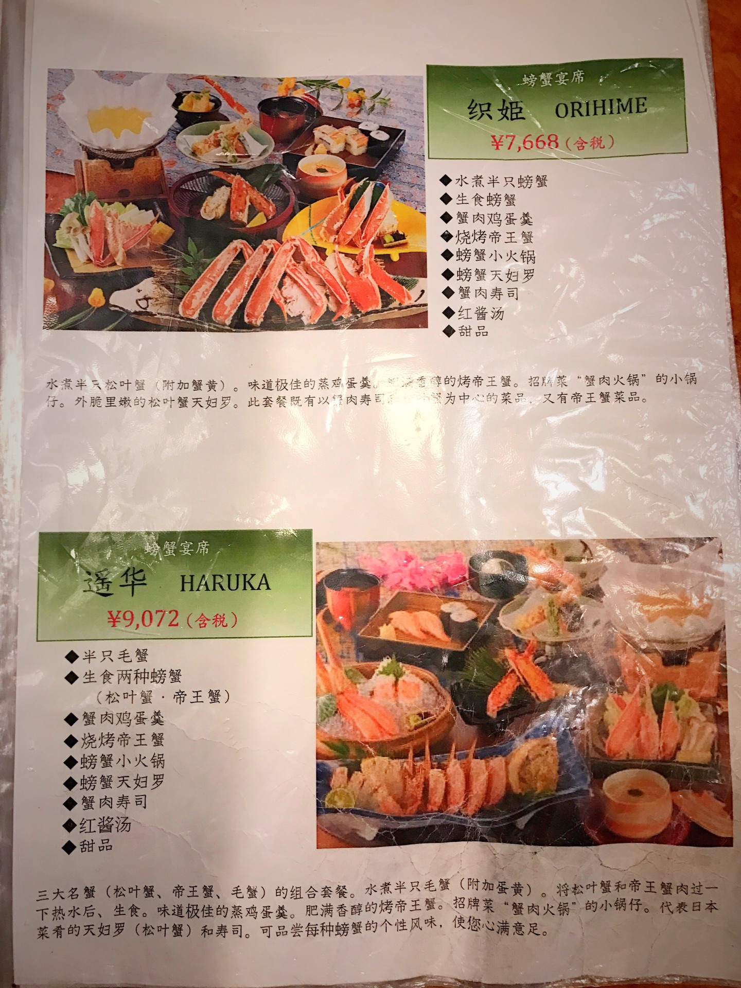 我点的是「遥华」套餐和一份「烤甲壳蟹黄」,其实每个套餐是一人份,但可以share,如果两个人食量都不是很大的话一份还是可以的。不要害怕,价格是日元。