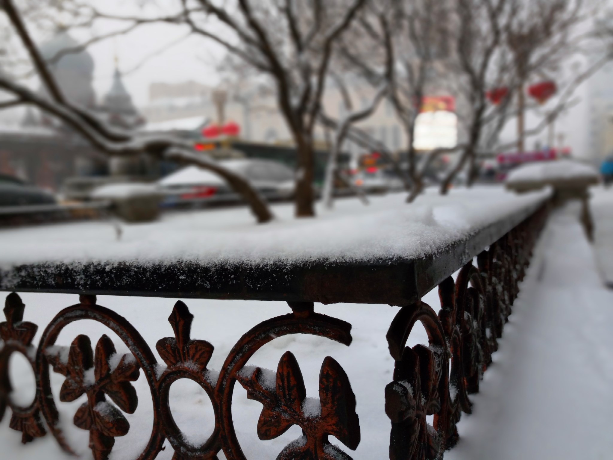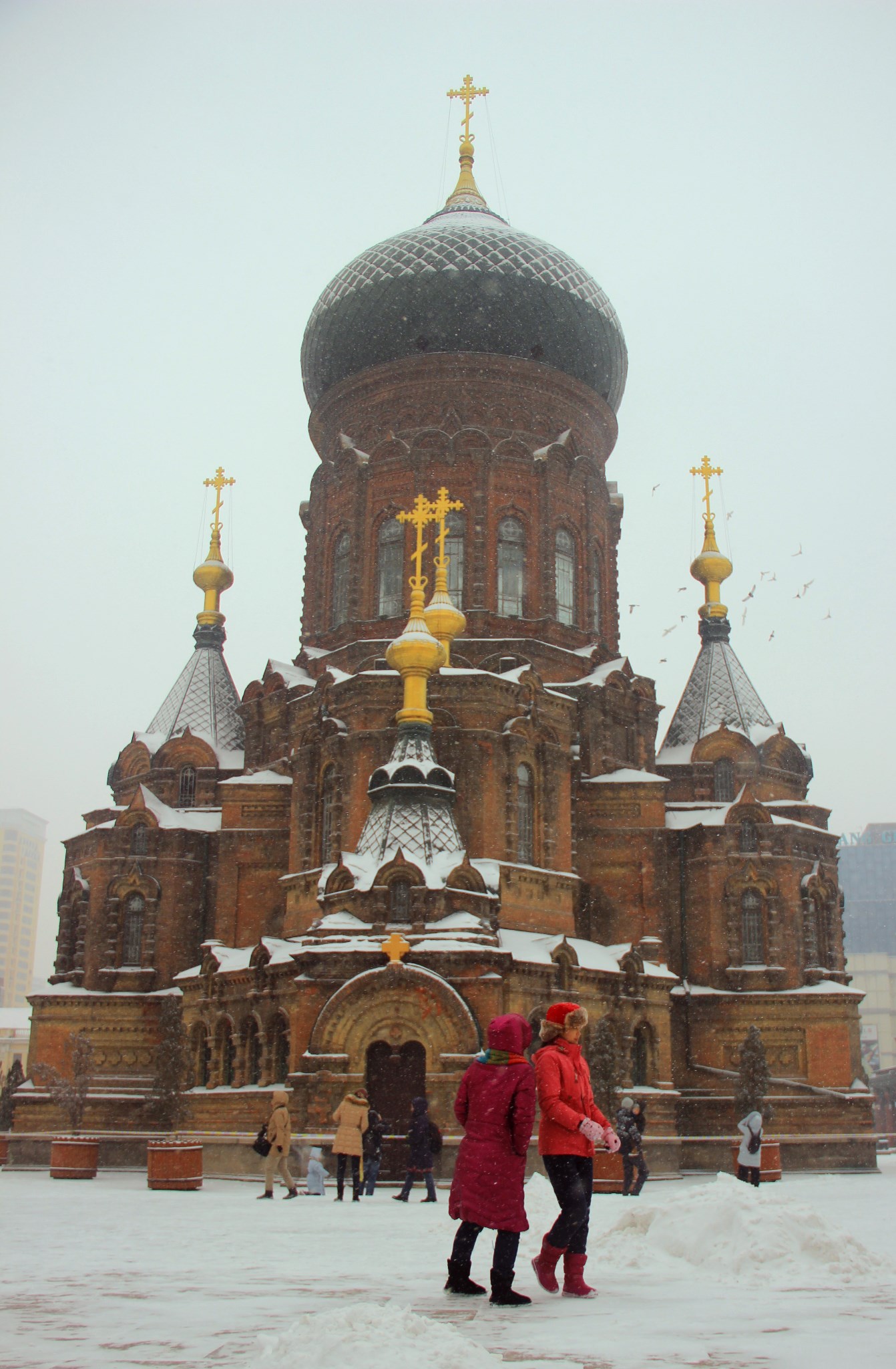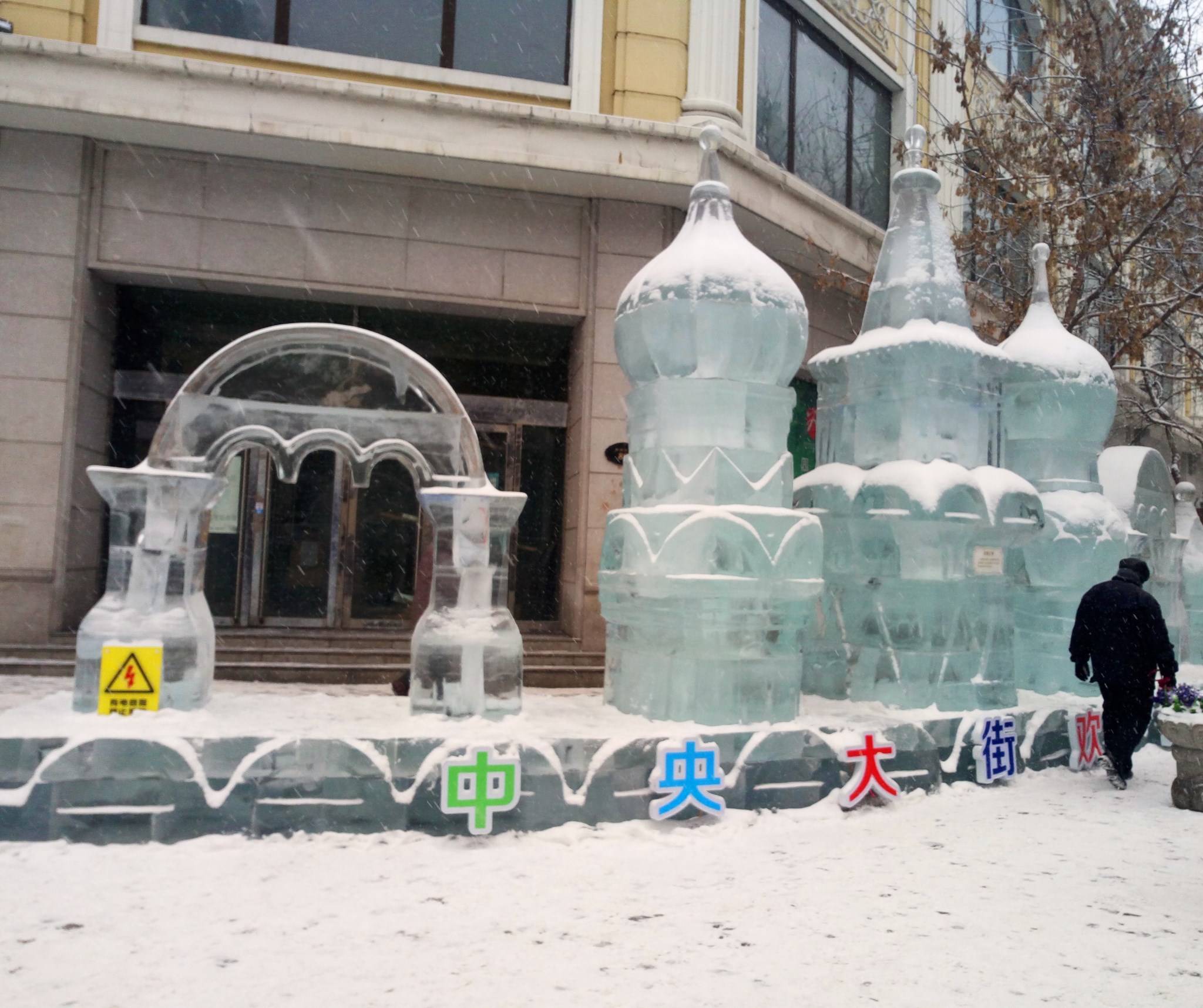 到了中央大街,天空纷纷扬扬的下起了雪