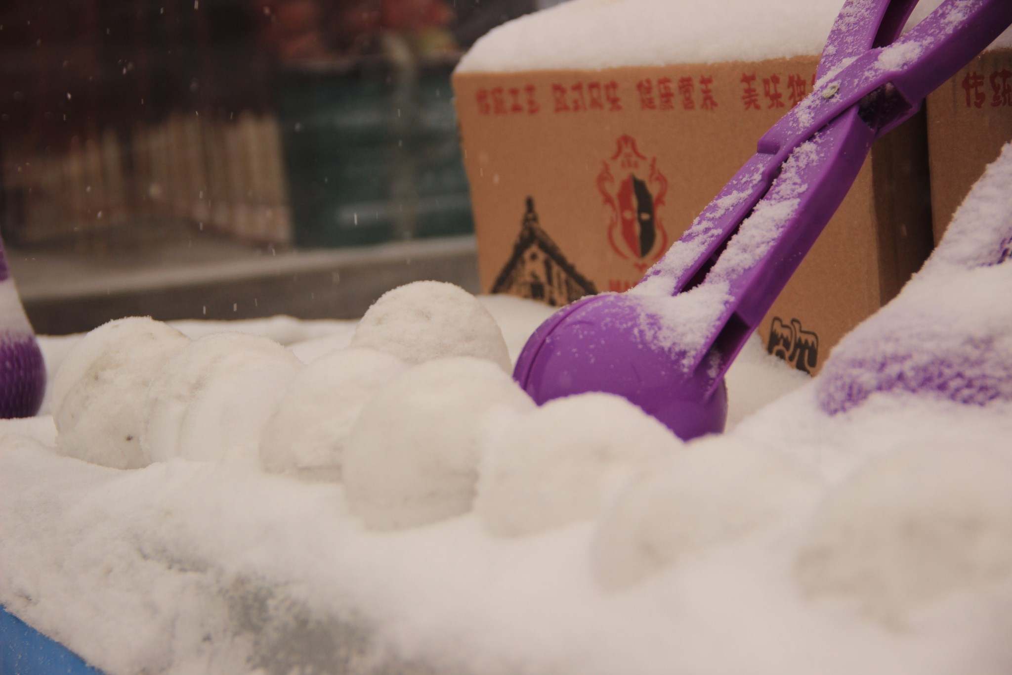 雪很蓬松,捏个雪球不容易,有这个小工具就方便多了,而且雪球砸到身上一点都不疼的。
