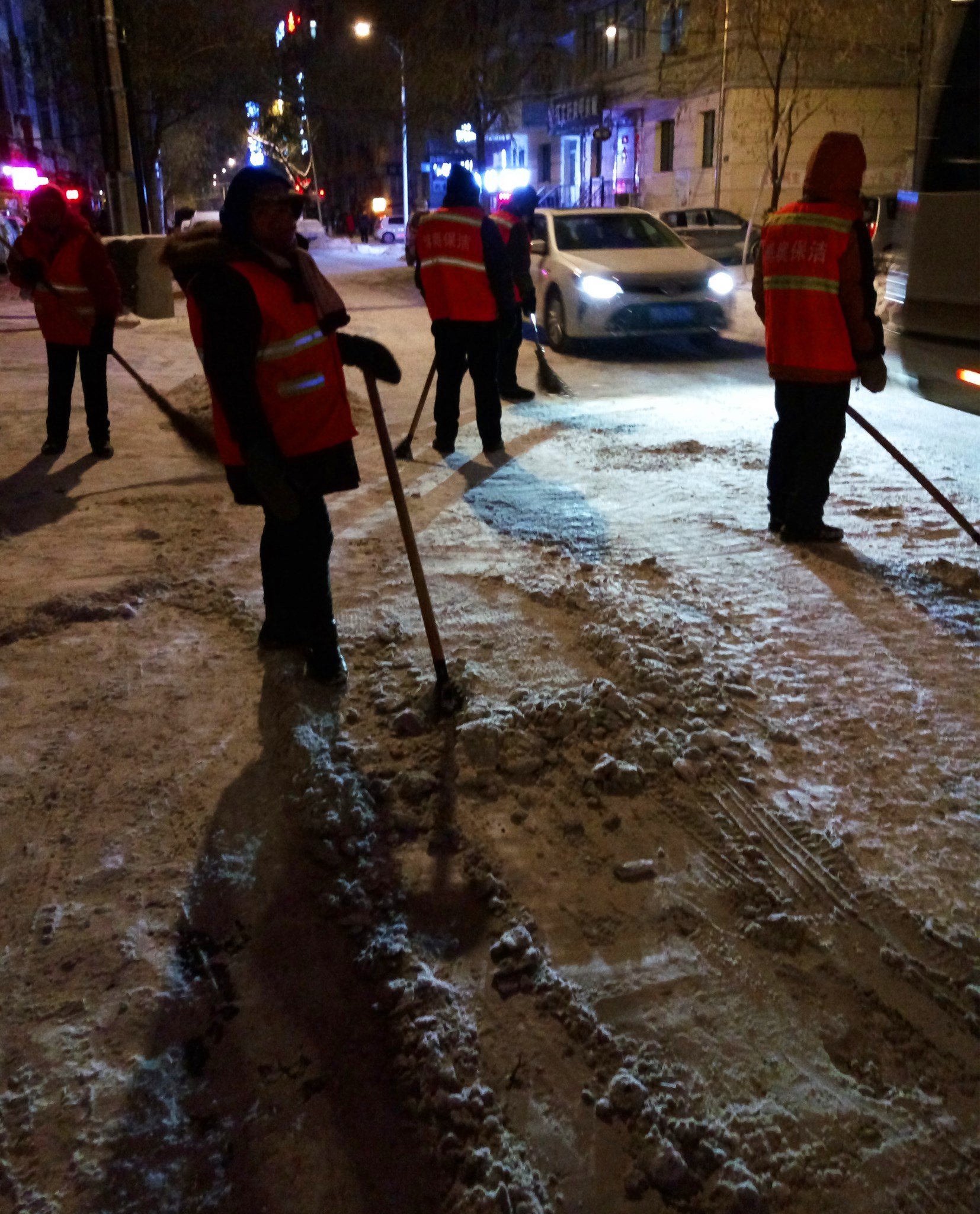 晚上十点,清洁工人依旧在工作,真的很辛苦