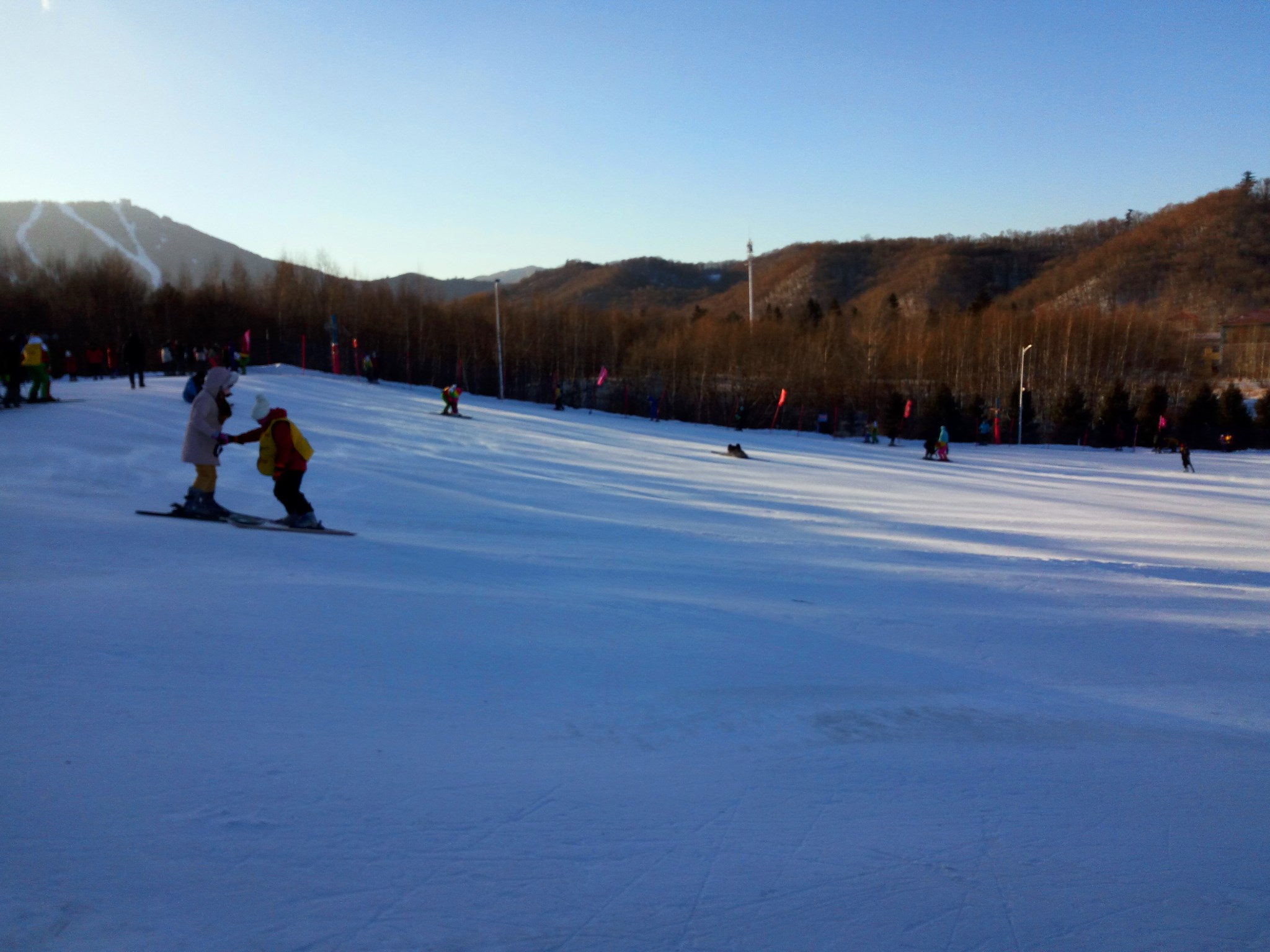 运气很好,高速没封,吃过午饭,就来到亚布力滑雪场,来之前我就想好要请个教练。但是因为临近过年,很多教练都回家了,僧多粥少,愣是没请到教练,哪怕是工作人员教了我窍门,还是有点怕。看别人滑的很好,想着鼓起勇气滑下去,都走到边上了,一阵大风吹来差点把我刮下滑道。马上心生怯意,加上之前踝部骨折过,还是没那胆子,就在平坦的地方滑了一小时左右,居然也滑的有滋有味,要求是有多低啊。