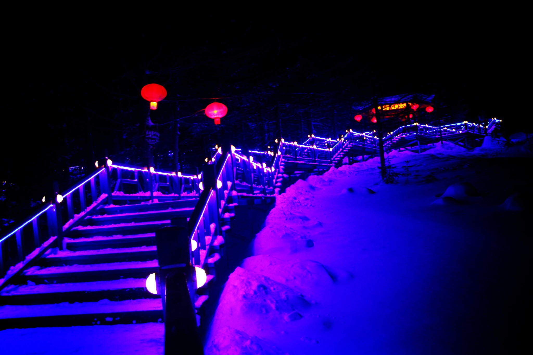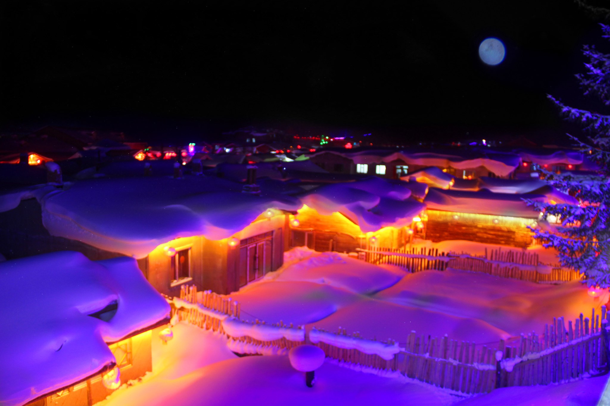 上面圆圆的不是月亮,是开了闪光灯之后的雪花,真是美丽的错误。