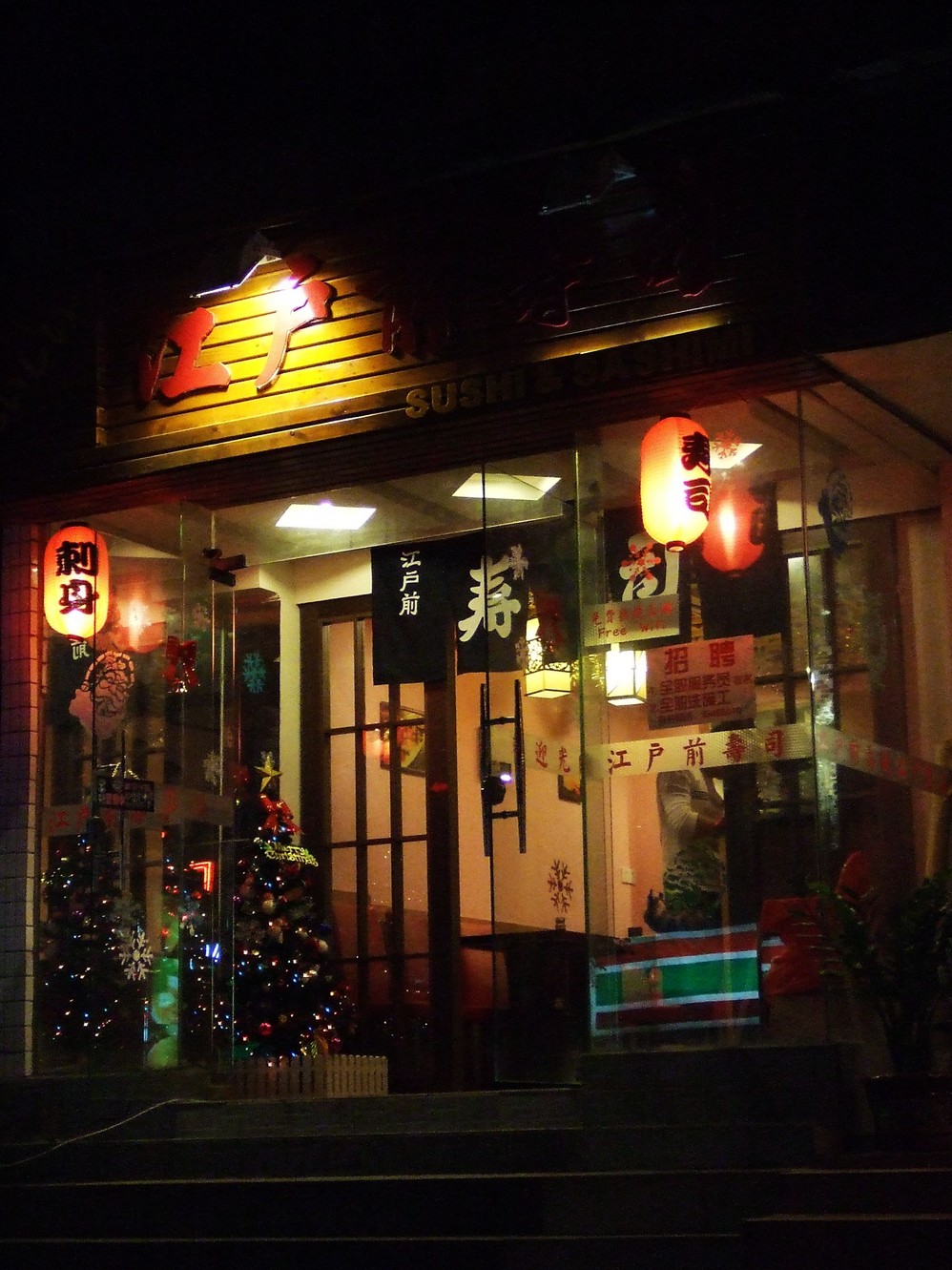 偶然在网上看到一家叫“江户前寿司”的小店的网评不错,于是某个夜晚冒名前往。走完了长长的一条淘金北路,依然没能寻见它的身影,正当想放弃的时候,望见小街尽头处若隐若现的红色灯笼,怀着最后一丝希望前去一探究竟,果然是酒香不怕巷子深啊。