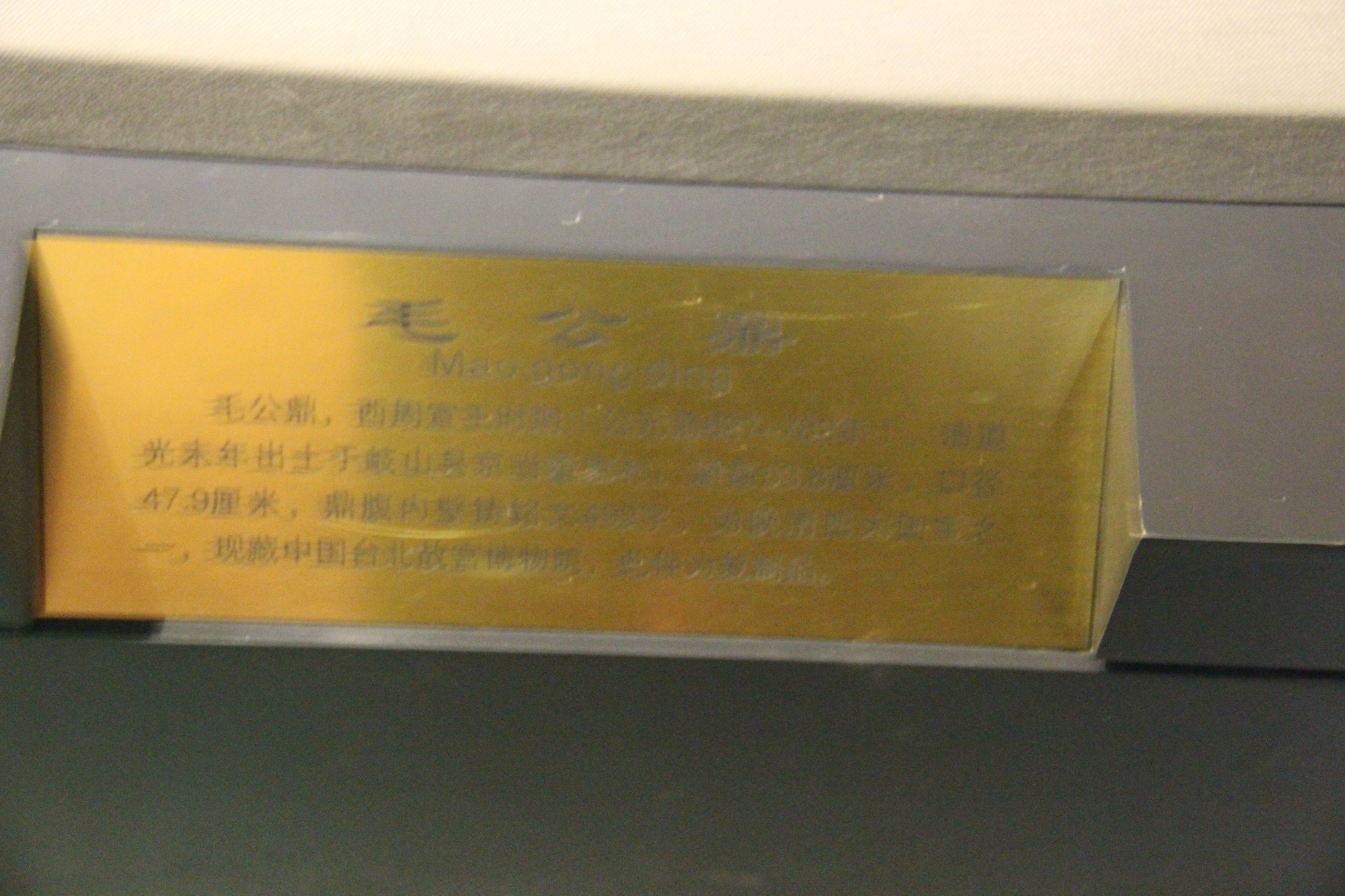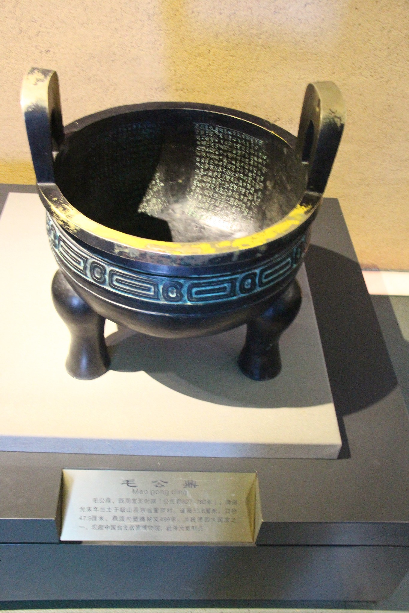 毛公鼎(Duke Mao Tripod),西周晚期毛公所铸青铜器,清道光二十三年(1843年) 出土于陕西岐山(今宝鸡市岐山县),收藏于台北故宫博物院。