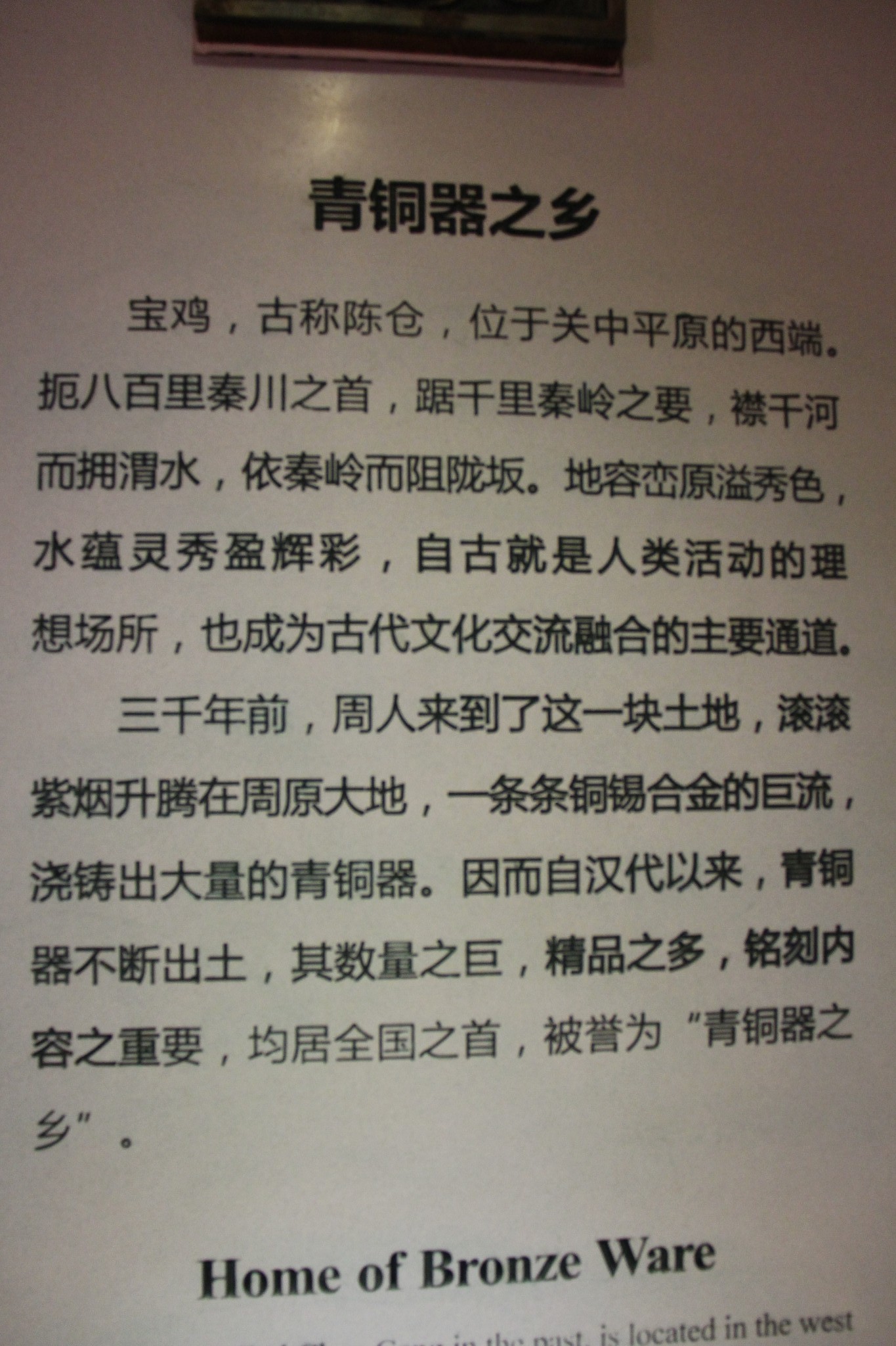 宝鸡是周秦文明发祥地,从汉代以来,青铜器不断出土,其数量之巨,精品之多,铭刻内容之重要,均居全国之首,被誉为青铜器之乡。