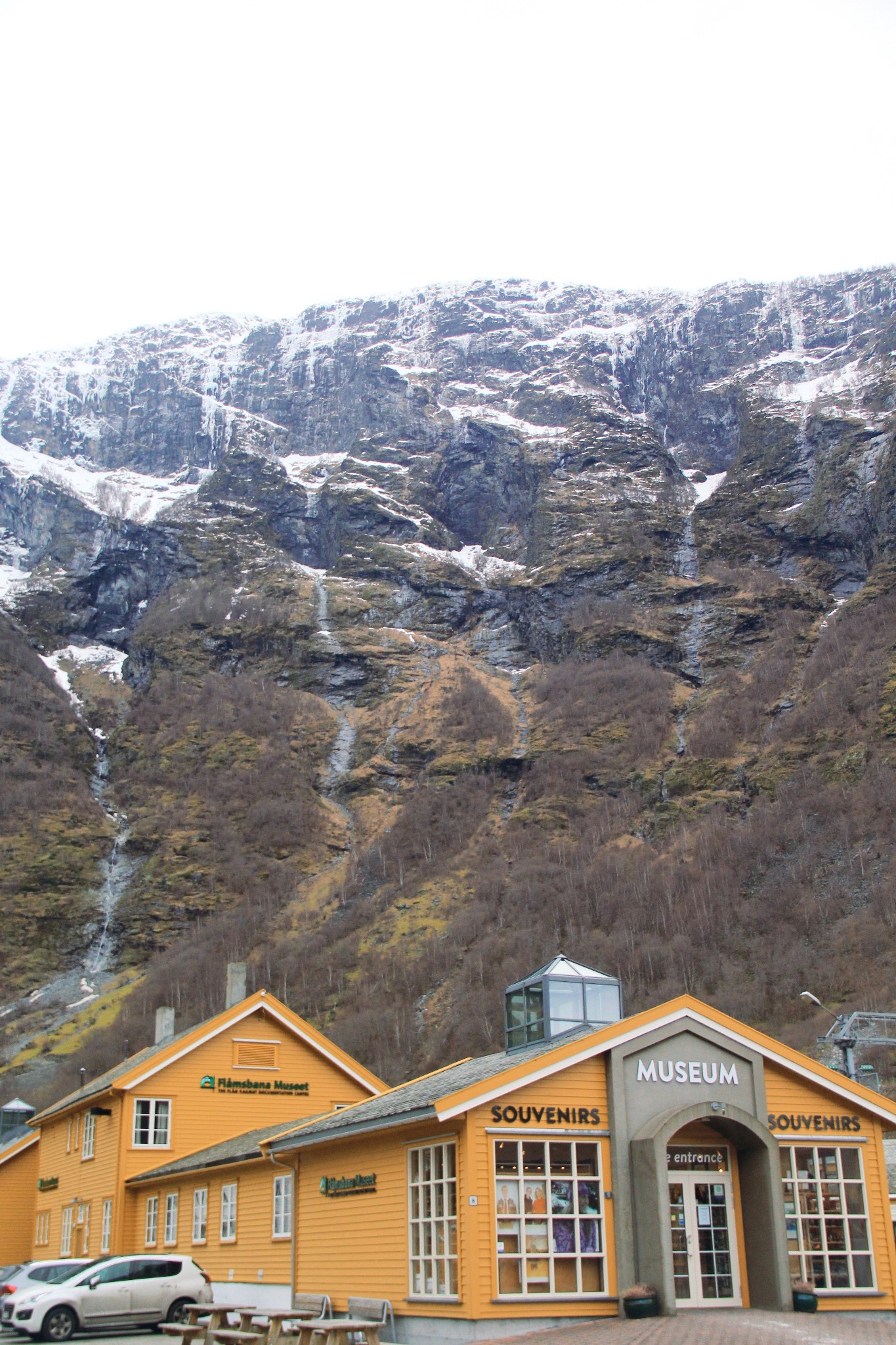 Flam高山小火车一路的景色是出了名的美貌,坐在左边和右边没什么差别,两边都会有风景,火车还会在瀑布前停留供乘客们拍照。然而,冬季的峡湾风景跟夏天比一定是有所打折的,以后有机会一定会在夏季再去一次。大约一小时后到达山脚下的Flam。一下车就是Flam的游客中心,那里的工作人员都特别Nice,尤其是前台小帅哥,人好颜帅英语棒。。。其实后来发现,整个挪威人民都特别热情,并且全民英语都很好。