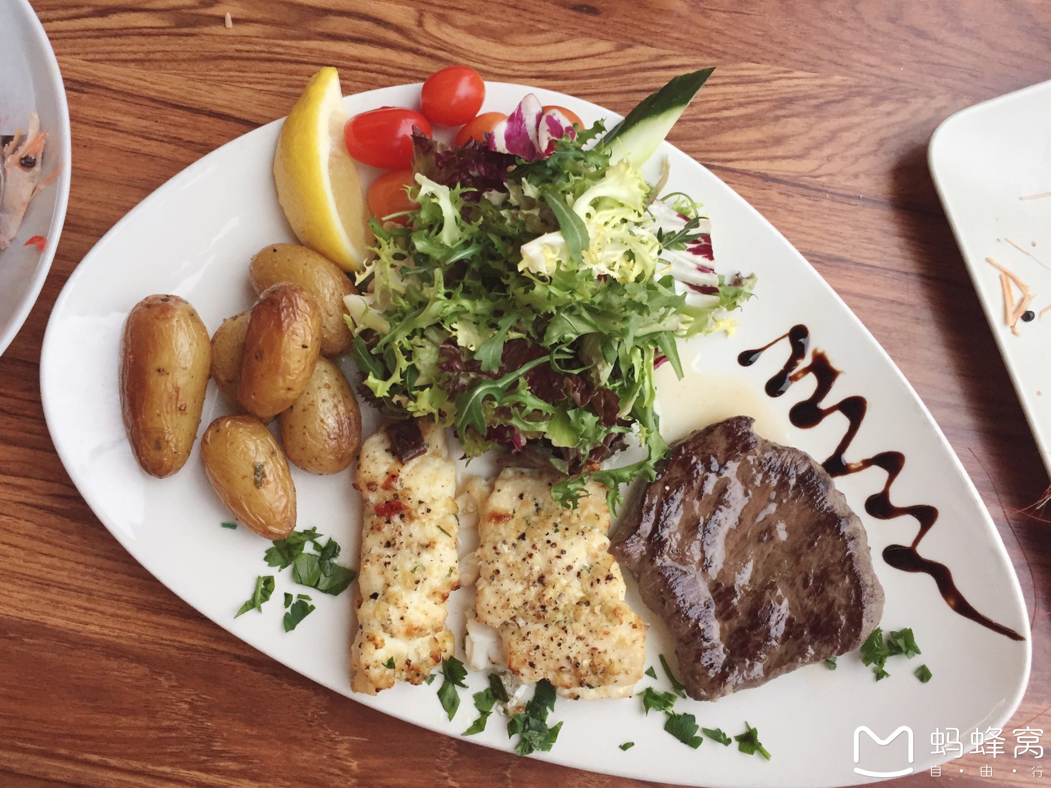 Bergen是个值得花上大半天逛一逛的特色小镇,一切景点皆在步行范围内,布吕根、鱼市场、博物馆、当地小商店等,个别远一些的景点比如水族馆之类的需要坐船去。火车站和巴士站也都在中心地带。Fish Market就在游客中心隔壁,虽然之前在官方旅游网站上看到不是很推荐,因为去的人都是游客,价格也会比别的地方高一些,但我们吃下来觉得还是不错的。说是fish market,其实里面只有3家商家,各占一块区域,(冬天室外摊位不开放)。我们找了其中一家坐下点了一些吃的,同时也可以点别家的菜,两家分别结账。点的菜基本是商家推荐的特色菜,比如挪威野生蚝、鲸鱼肉、海鲜拼盘等。味道的确很好,尤其生蚝,(比外滩西餐厅里的伪高级生蚝好吃太多)。人均花费200 RMB,在挪威算是相当划算的了(跟一份150元的汉堡套餐相比)。居民区都在山坡上,有时间的话可以爬上去从高处俯瞰卑尔根中心。天黑后,坐机场大巴到卑尔根机场,从奥斯陆转机去特罗姆瑟。