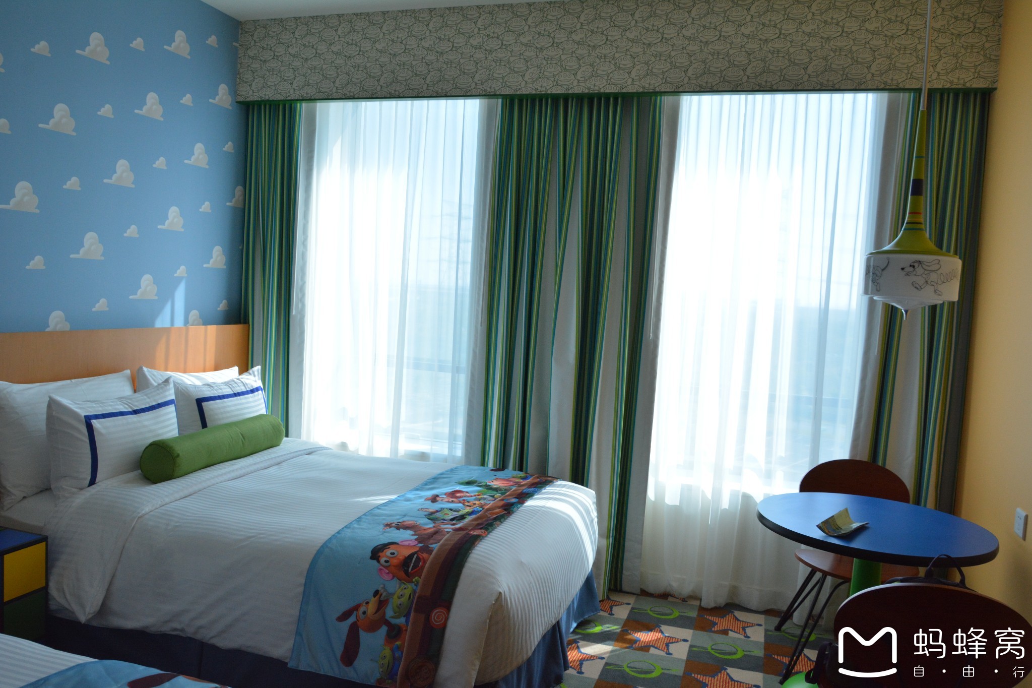 酒店很不错,电梯语音特别好玩,是巴斯光年的语气,告诉你到了几层,侦查到了什么什么。比如我们是在6层,一到6层就会说“6层到了,我侦查到了基地balabala”哈哈哈。房间整洁大方,远远超出我的预想,要知道这家酒店和我后面要住的乐园酒店,价格上相差将近一倍了。而且床很大很舒服,床品干净柔软,说是二人的标间,但是每张穿都可以睡两个成年人,没问题的。可以说要是想经济实惠,这家是首选,真的很不错。但是也有弊病,后面我会说到的。