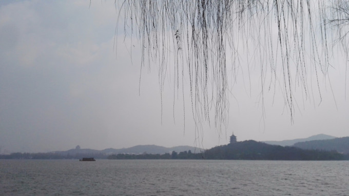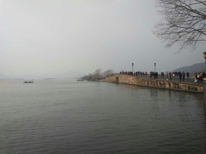断桥上人不少,骑到断桥不远处时天空突然开始飘小雪,正欣喜间,又骤然停下,于是所谓的“断桥残雪”就无缘得见啦