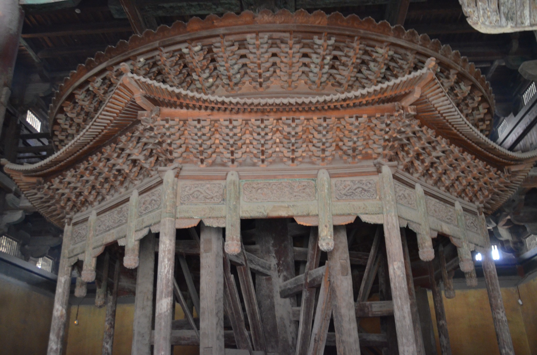 第一宝:摩尼殿整个的建筑,是中国仅存的“十字型”建筑,梁思成先生这样感叹到“那种画意的潇洒,古劲的庄严,的确令人起一种不可言喻的感觉。尤其是在立体布局的观点上,这摩尼殿重叠雄伟,可以算是艺臻极品,在中国建筑物里也是别开生面。”