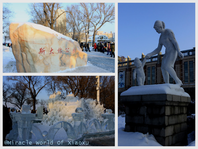 第1天:11点到宾馆,买地图,然后圣索菲亚大教堂→老上号→中央大街→防洪纪念塔→松花江→斯大林 公园→华梅西餐厅→斯大林 公园→兆麟公园冰灯游园会