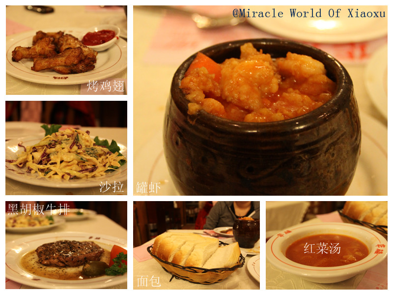 晚上吃的华梅,可能是因为进去后要排队,我们为了节省时间吃的双人套餐,178元,他家刀子不好使,牛排很难切,除了罐虾是热的,沙拉 (还不错,可能是丘比沙拉 酱