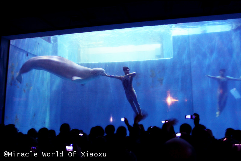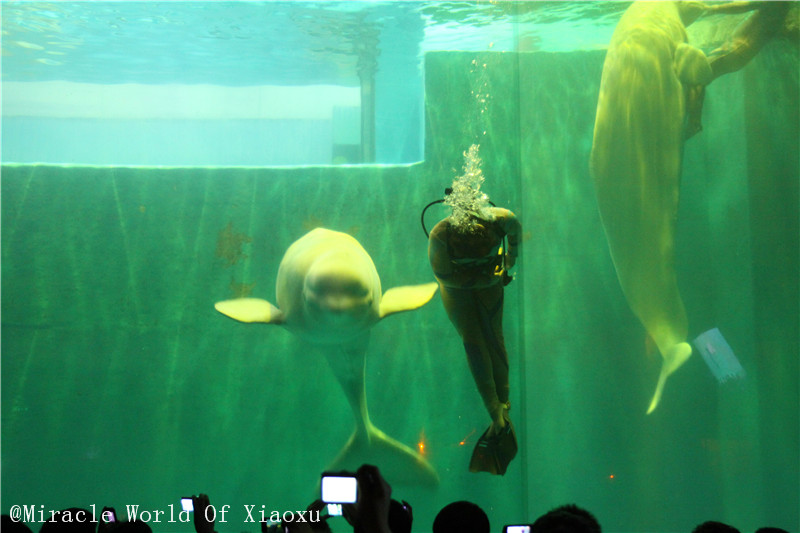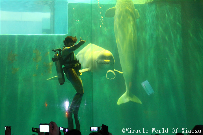 第1站、极地馆。看到可爱的白鲸宝宝和驯养师在水中的表演,在和着my heart will go on的歌,小嘘还有点热泪盈眶,虽然在这之前这首歌已经属于要听吐了的歌。