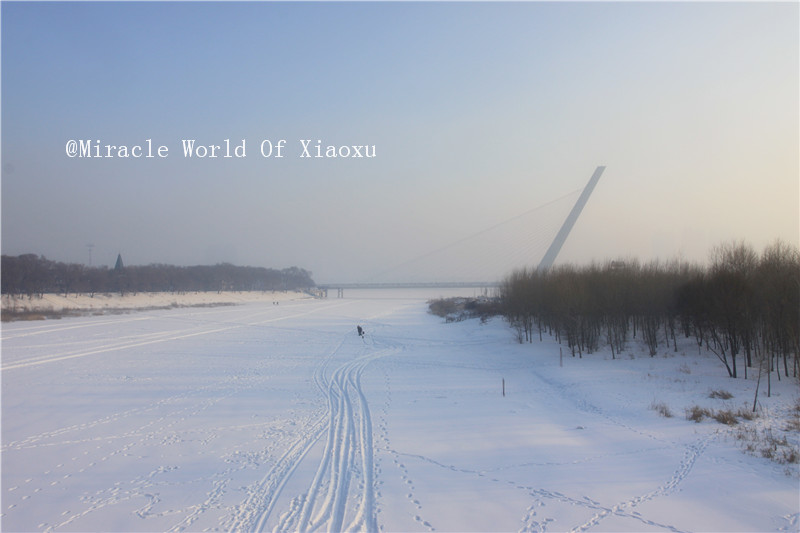 结了冰的松花江面,很宽阔啊