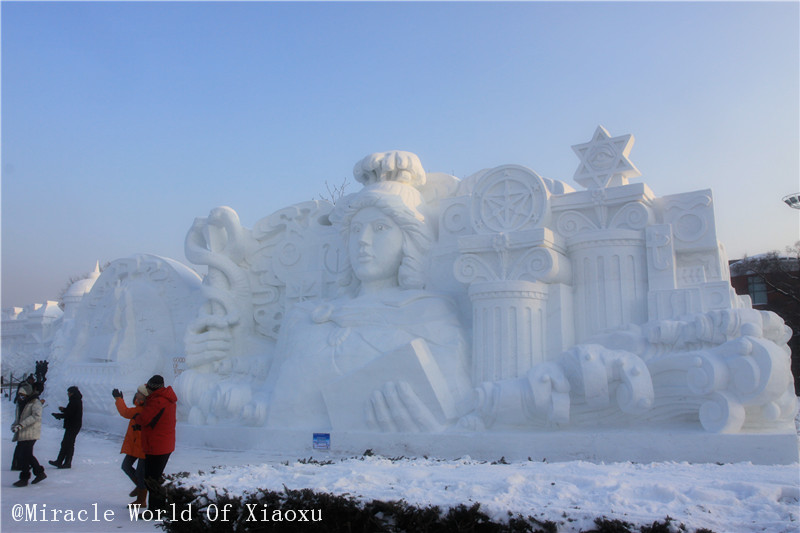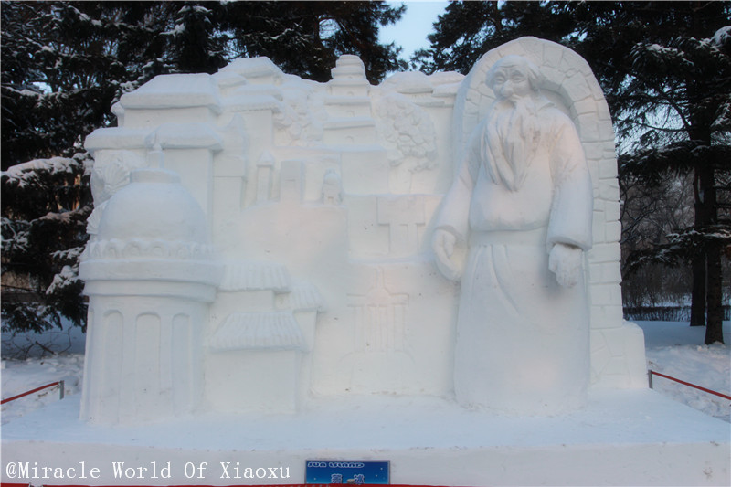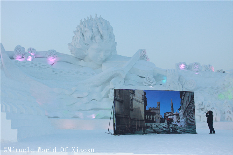桥正对面的蒙娜丽莎,正在赶工啊,我是1月3号去的,有些雕塑完成了,有些正在赶工,赶着1月5号正式开展。。大家都很忙。。。。。。有什么问题想问的,师傅们都顾不上回答,呵呵。。。。不知道现在的雪博会是不是更漂亮了。。