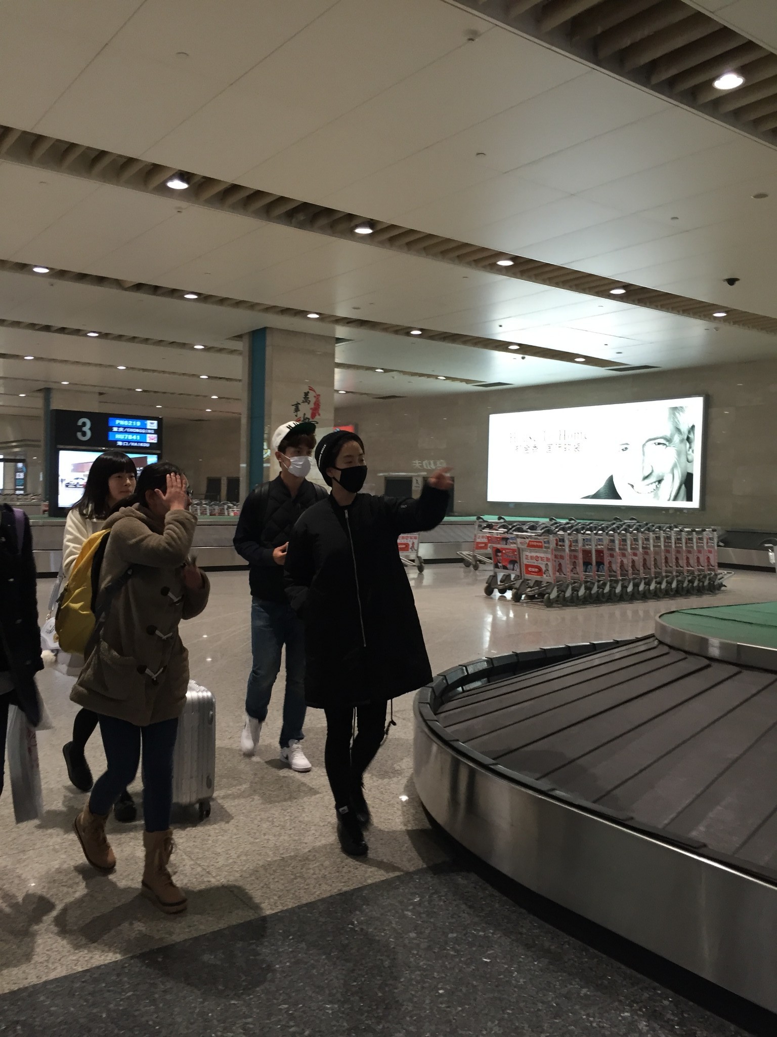 刚打算走出机场门口,遇到要拿行李的智孝。