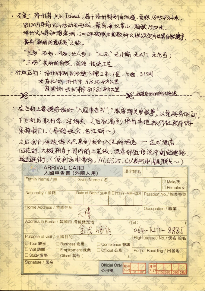 【Tips】在飞机上要提前填好《入国申告书》和《游客携带物品申报单》,这样过海关的时候就不会耽误时间了~
