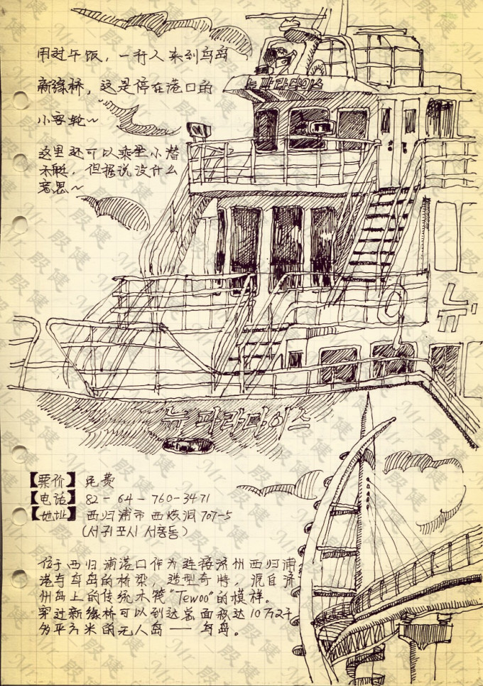 用过午饭,我们来到第三站,西归浦港口的新缘桥,这是连接鸟岛的通道,也是标志性建筑之一~这是免费的景点哦~