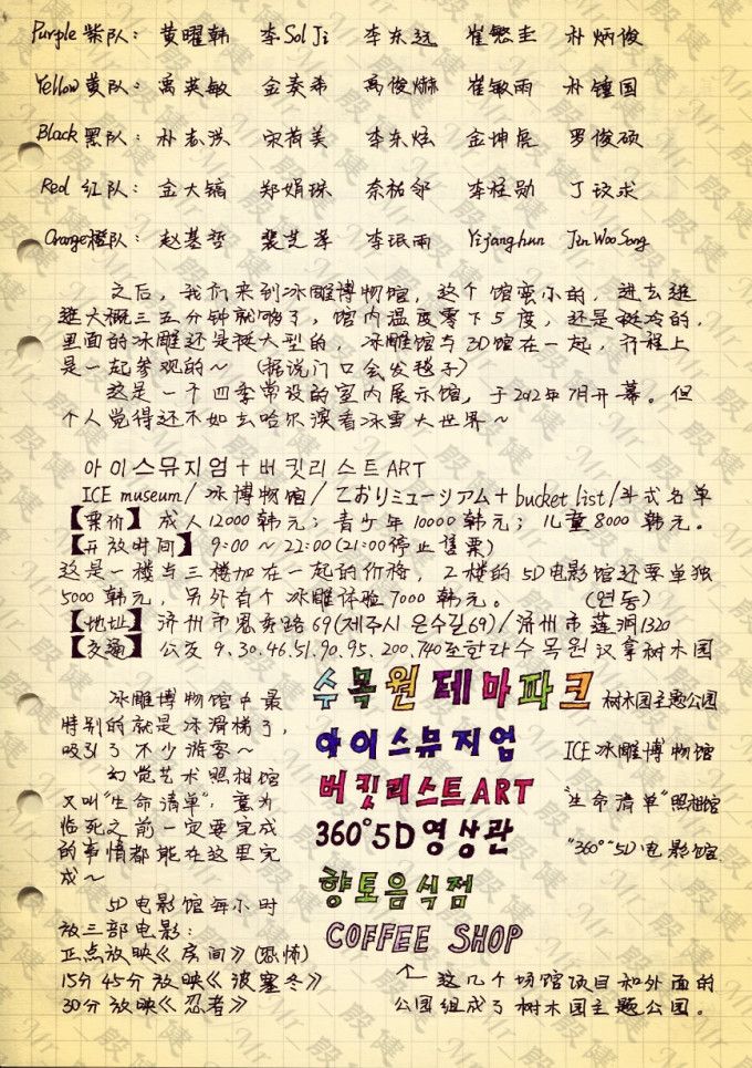 在机场可以租用随身wifi,押金是500元;换钱在银行办理,机场和济州的换钱所都可以,我们是找领队给换的,RMB900换了15万韩元,这些现金就够了,我们两个人都没有用完,除了自由行时去的居民区里的一些小店,大部分地方都能刷卡,尤其是导游带去的地方和卖衣服、化妆品的地方肯定有~