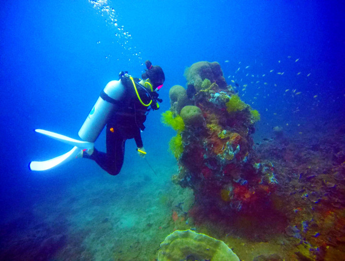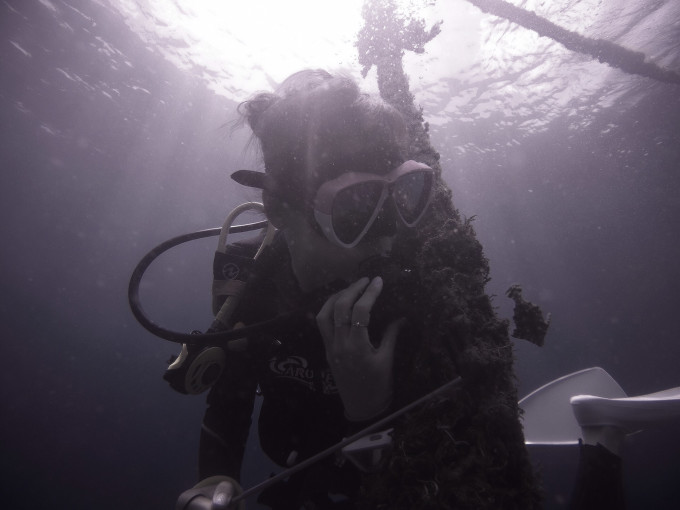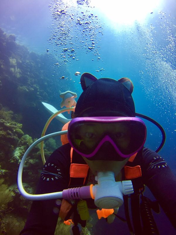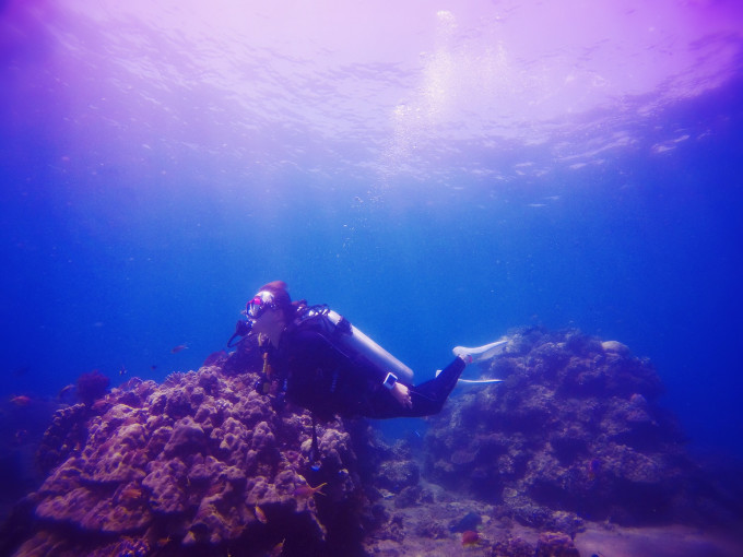 潜店的sasha教练,可爱活泼却又严谨的广东女孩,在身体的同一部位和我有着一样的纹身。refuse to sink, 是我们对这片海共同的追求和敬畏。遗憾忘记合影一张,这个世界如此之大这个世界这样的小,有着相同部位的相同纹身并着同一个爱好和追求,是双生般的存在。尽管私底下相谈甚欢,但换上湿衣变成教练和学员之后,sasha又是严谨而严格的。她告诉我说作为一名rescue diver trainee,就意味着以后可能会被性命相托,出于对生命的敬意我们都应该perfect performance! 如果达不到表现标准她绝不会轻易给我过关。很震撼,这和大多数人认为的潜水证只是娱乐和花钱买卡截然不同。而scuba crew 就是这样专业的存在。(问她讨美照一张,结果…根本看不到脸。爱潜水的孩子是不是都一个特点,觉得自己在水里的样子才最美)