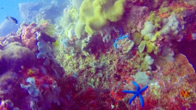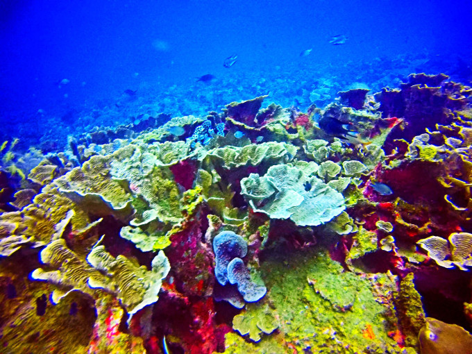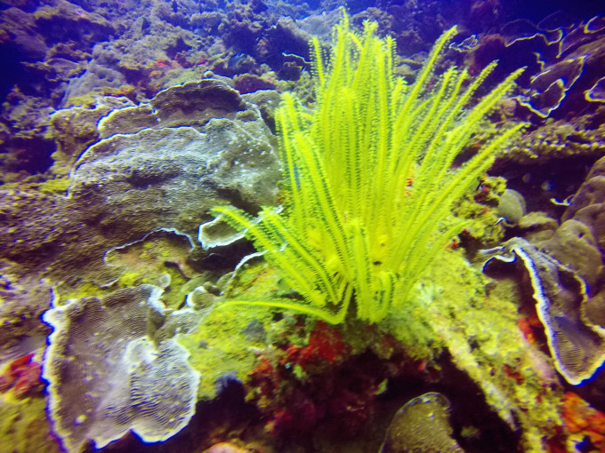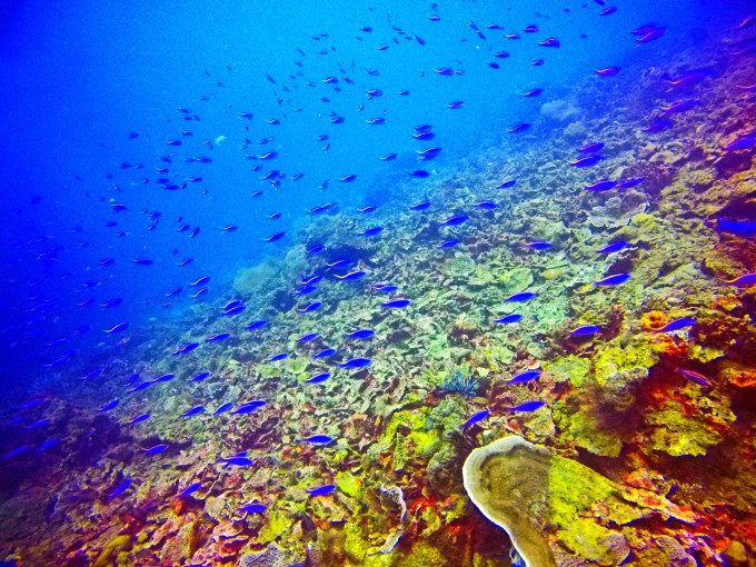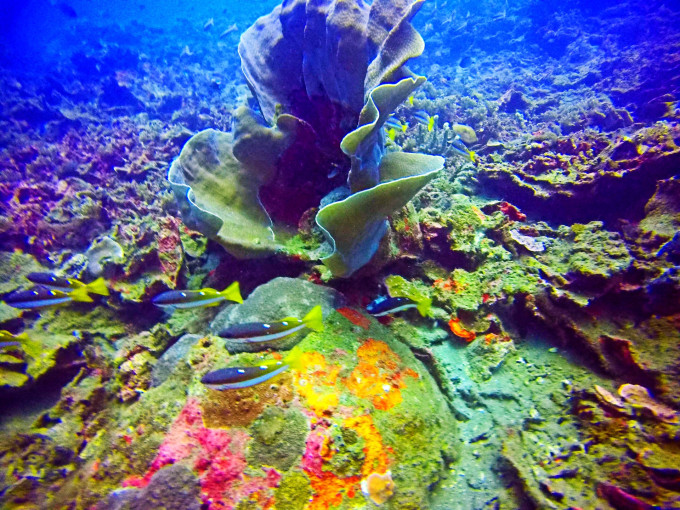 而除了考试,每天最想做的事莫过于跳入海中。当BCD泄气水面没过头顶的那一瞬,便仿佛进入了另一个二次元空间。身体是轻盈的,整个世界只有自己清晰的呼吸声,成片成片色彩斑斓的珊瑚构成海底独有的百花齐放盛景,或大或小的鱼群如蝶如燕穿梭其中,时而静默如画,却在你几欲伸手的须臾灵动而去消失不见。轻轻踢动脚蹼,稳稳吐纳气息,这一刻忽然明白那首歌中“忍不住化身一条孤独的鱼,逆着洋流独自有到底”的所行所想。这一刻,光怪陆离变幻莫测的世界,任意驰骋心随意动。太多的美照,呈现一小部分,廖以浅表。
