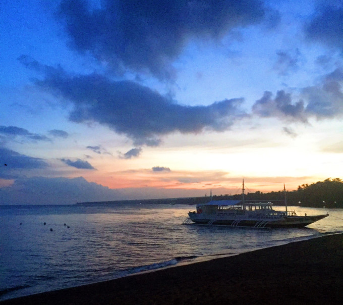 人生第一次岸潜,清晨踩着阳光去感受杜马盖地的绵软沙滩和温暖海水。岸上有早起奔跑的菲律宾孩子,用各国语言试图和我打招呼然后笑作一团四下跑开,有黑白相见的小猫崽围绕脚边舔舐掉落的面包屑,不远处scuba crew 杜马潜店的白色航船在金色朝霓映射下徜徉摇晃在碧蓝海水,杜马的清晨活力与静谧并行,可爱的不可方物。