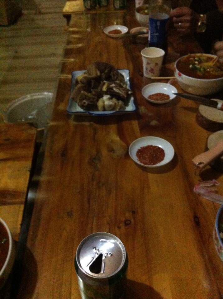 游玩第二布达拉宫之称的观音庙,下山开始找美食了,大家一致同意选择了吃藏餐,现在记不清楚具体是哪一家了,不过印象当中快到镇尽头了。味道很不错,环境指数非常高,老板人也很好!还送我们啤酒喝,还跟我们一起合影勒,不用说就知道谁是老板了吧?哈哈。。。