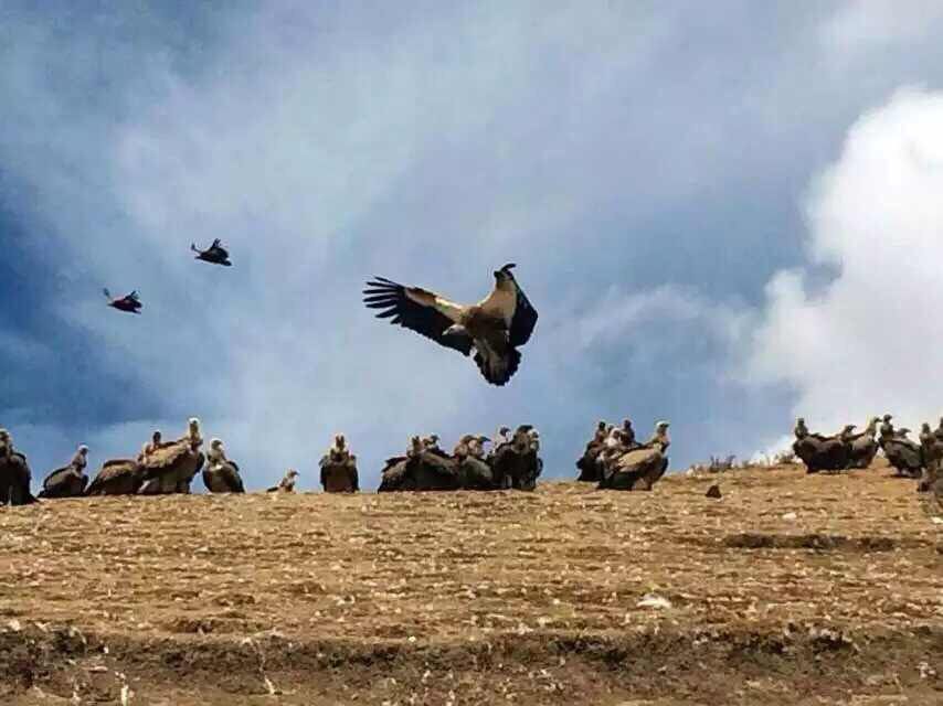 天葬准备前。。。很多秃鹫都在排队了,等候天葬师傅发号司令。