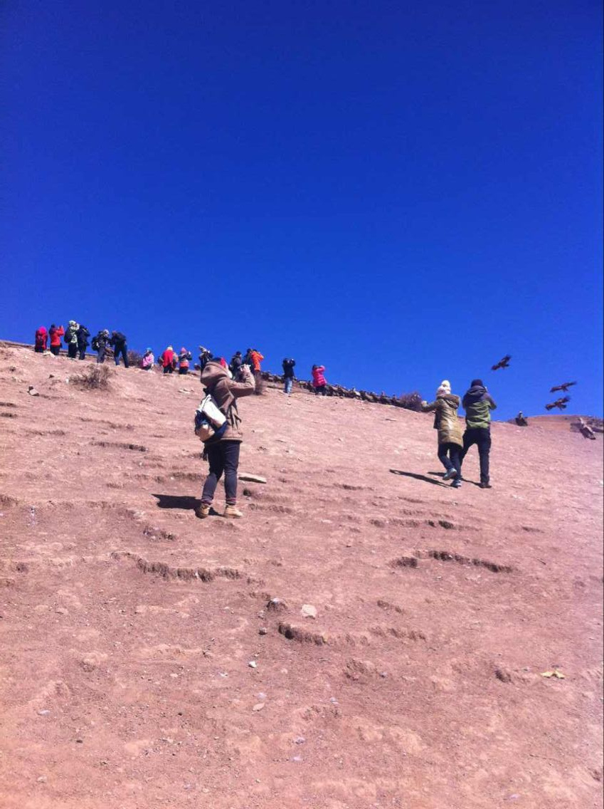 开始进攻了,后悔站得太近了,天葬师一挥手,秃鹫些就开始往下扑,灰尘很大,风也大。扑面而来的味道那简直是“爽歪歪”啊。。。