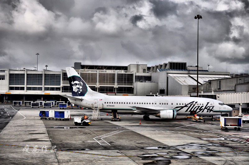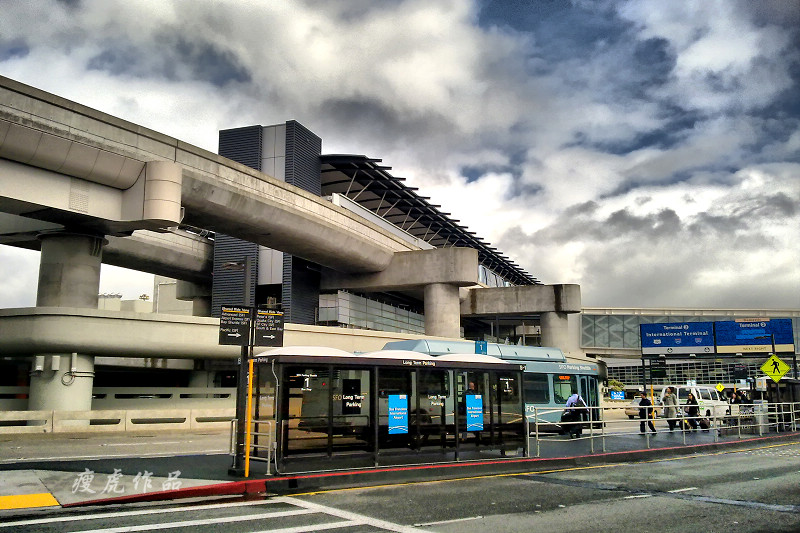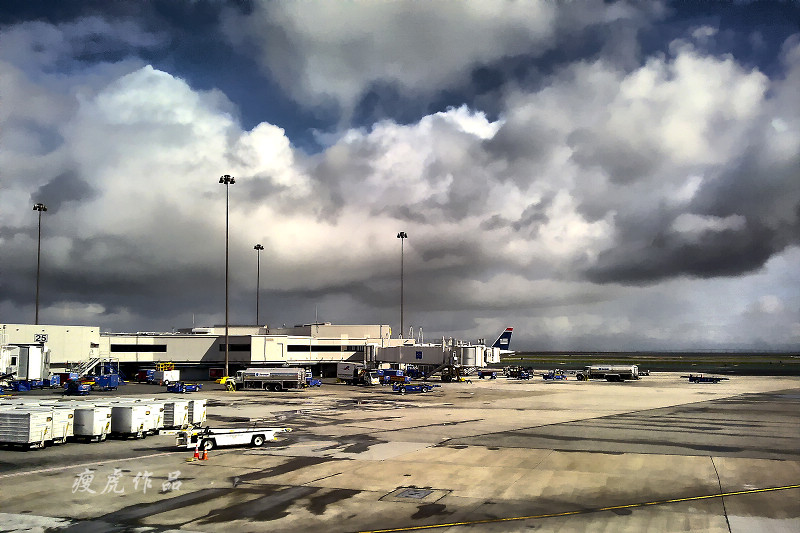 飞机下午4点起飞,我们一直坐了近11个小时到达旧金山。入境还比较顺利,给入境官员看了邀请函,说明来的目的,还有返程的时间安排,就PASS了。取出行李,重新托运,到E32登机口,等待中,拿出相机拍了几张旧金山机场的照片。