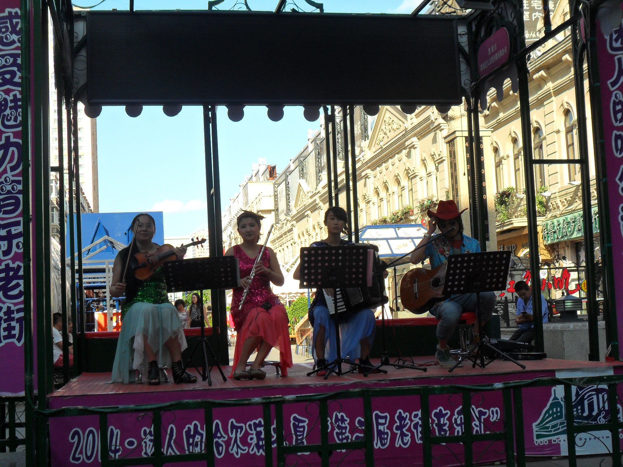 6月17日:上午游览松花江和太阳岛。说实在太阳岛景色很一般,感觉是徒有虚名。下午逛哈市著名的中央大街,游览圣索菲亚教堂感觉还真不错。特别是街头的哈市2014年哈尔滨之夏音乐汇表演很有城市文化氛围。当然在哈尔滨肯定要吃马迭尔冰棍和华梅西餐厅的西餐。晚上7点44分乘坐K7401次快车离开哈尔滨前往漠河。