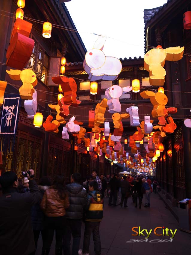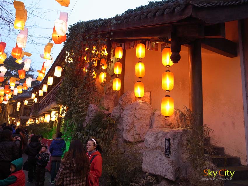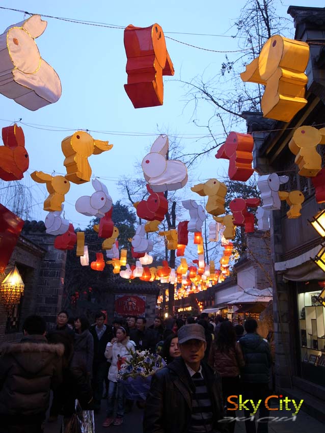 锦里大门口灯火通明,正好赶上大年庙会,游览的人群甚至比宽窄巷子还要多,于是便简单游览的一圈便回宾馆去了。