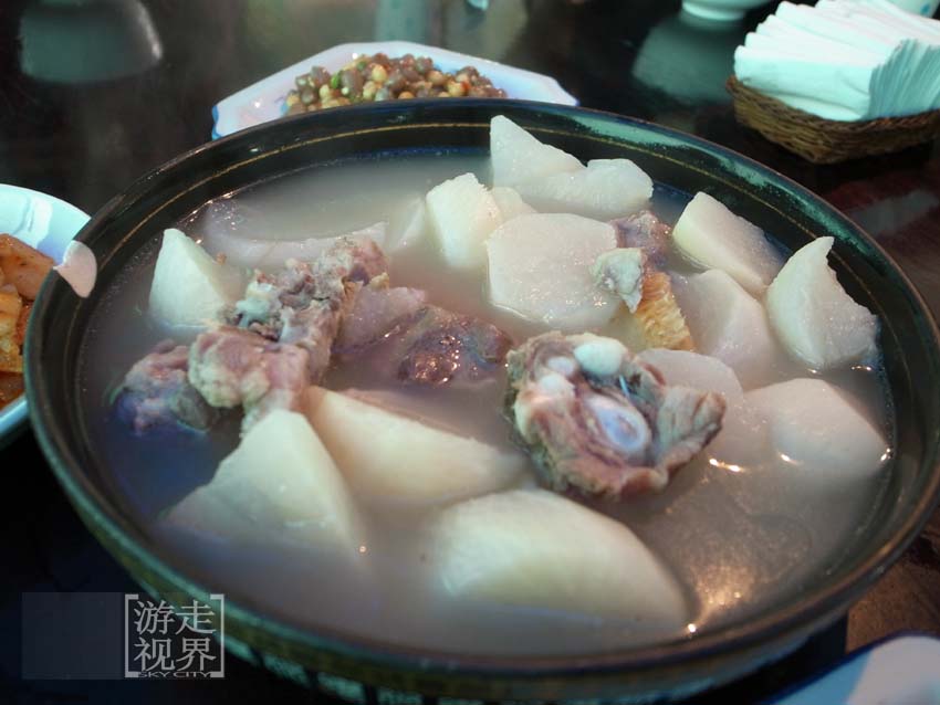 等我们落座并点好饭菜后发现这里似乎大多数是吃婚宴的,那群摆乌龙的客人等我们吃的参不多时才开始上桌,呼啦啦一群人转眼便将6/7张桌子坐满了。服务员便将先前我们看到的已经准备好的凉菜都端到了桌上。可是,另我们费解的是,这里似乎看不到新郎和新娘的踪迹,没有我们北方人的婚礼宴请那套程序,搞啥子了?看不懂。
