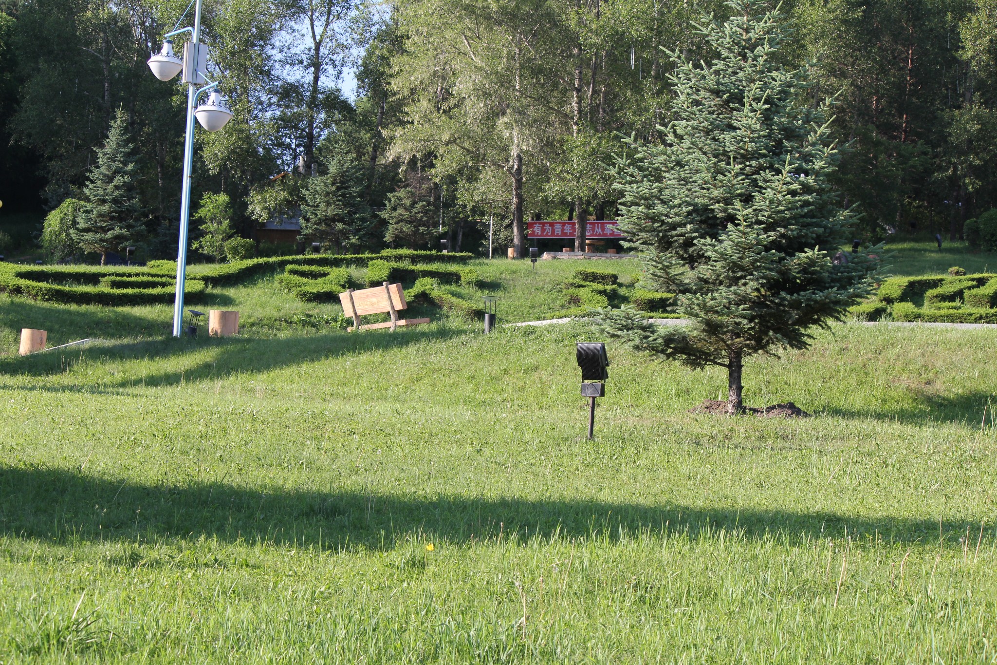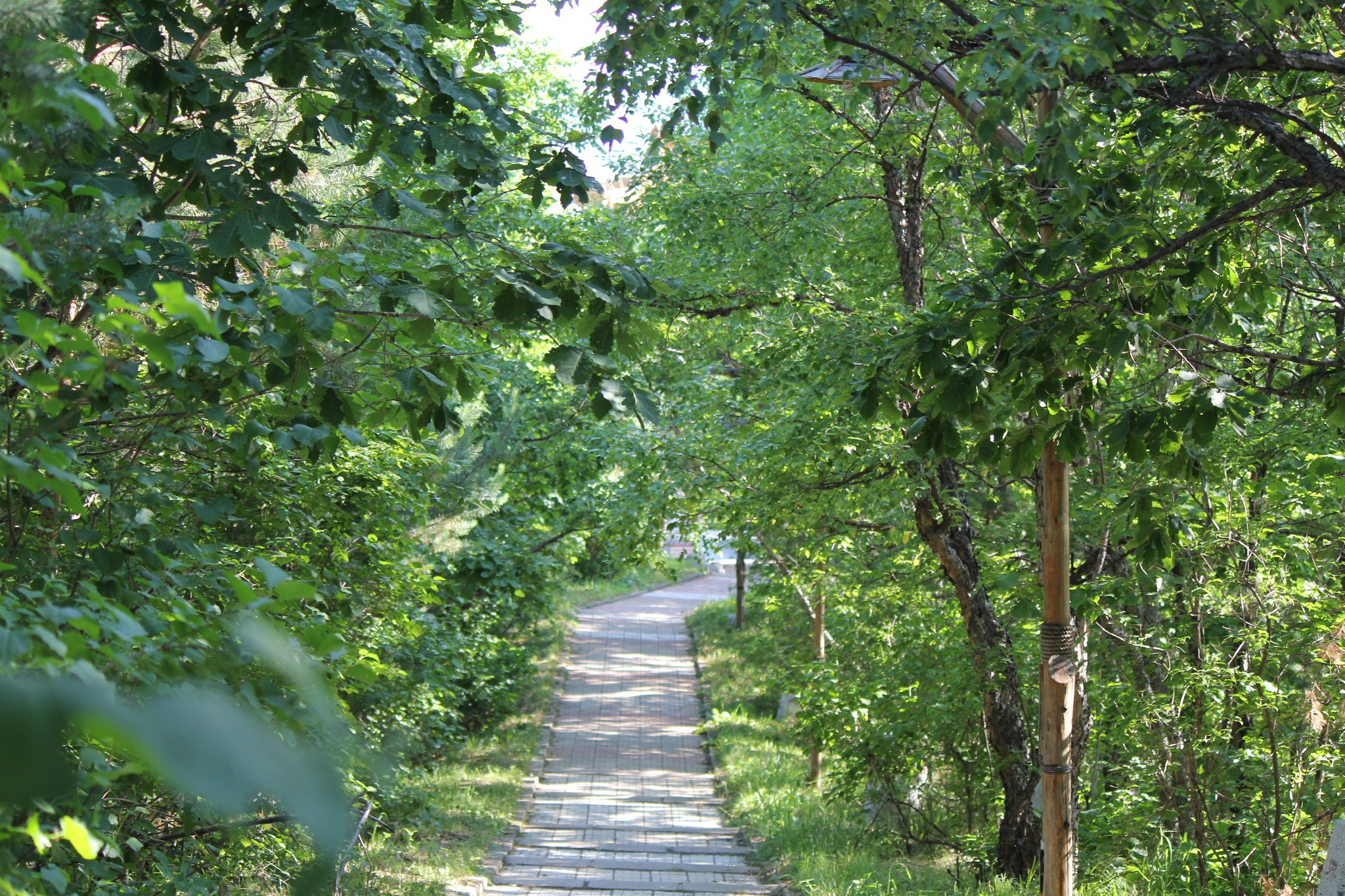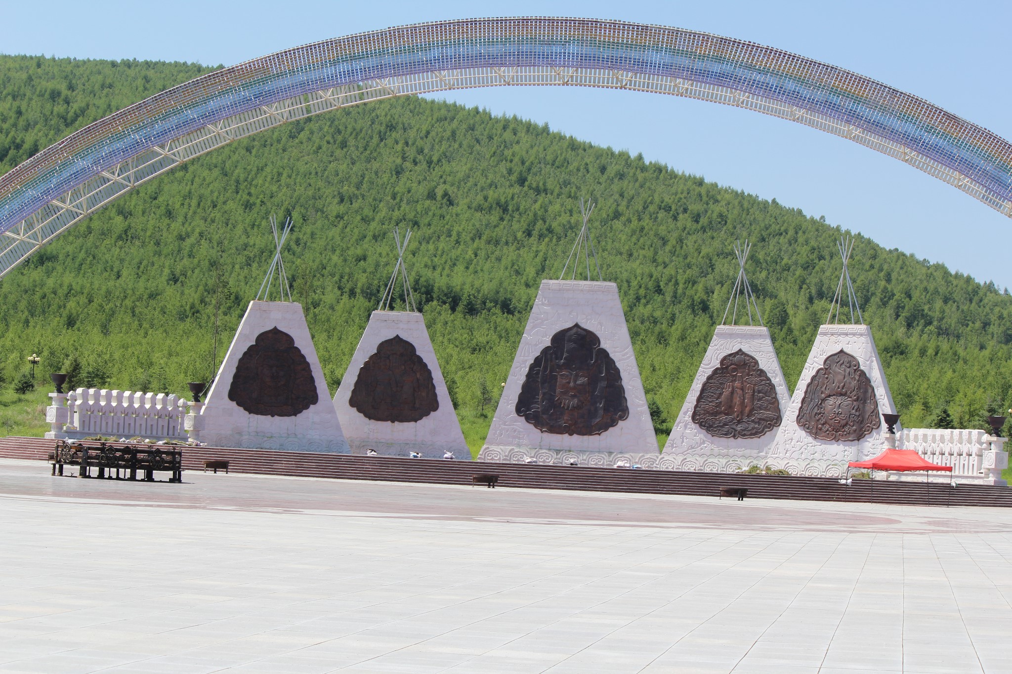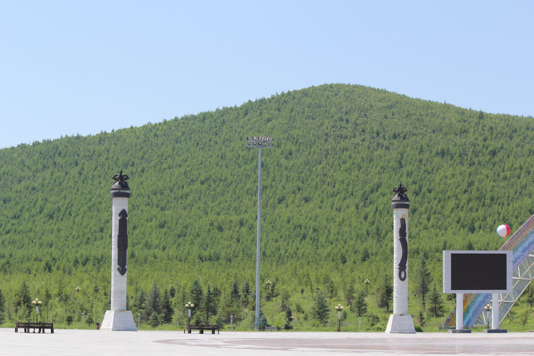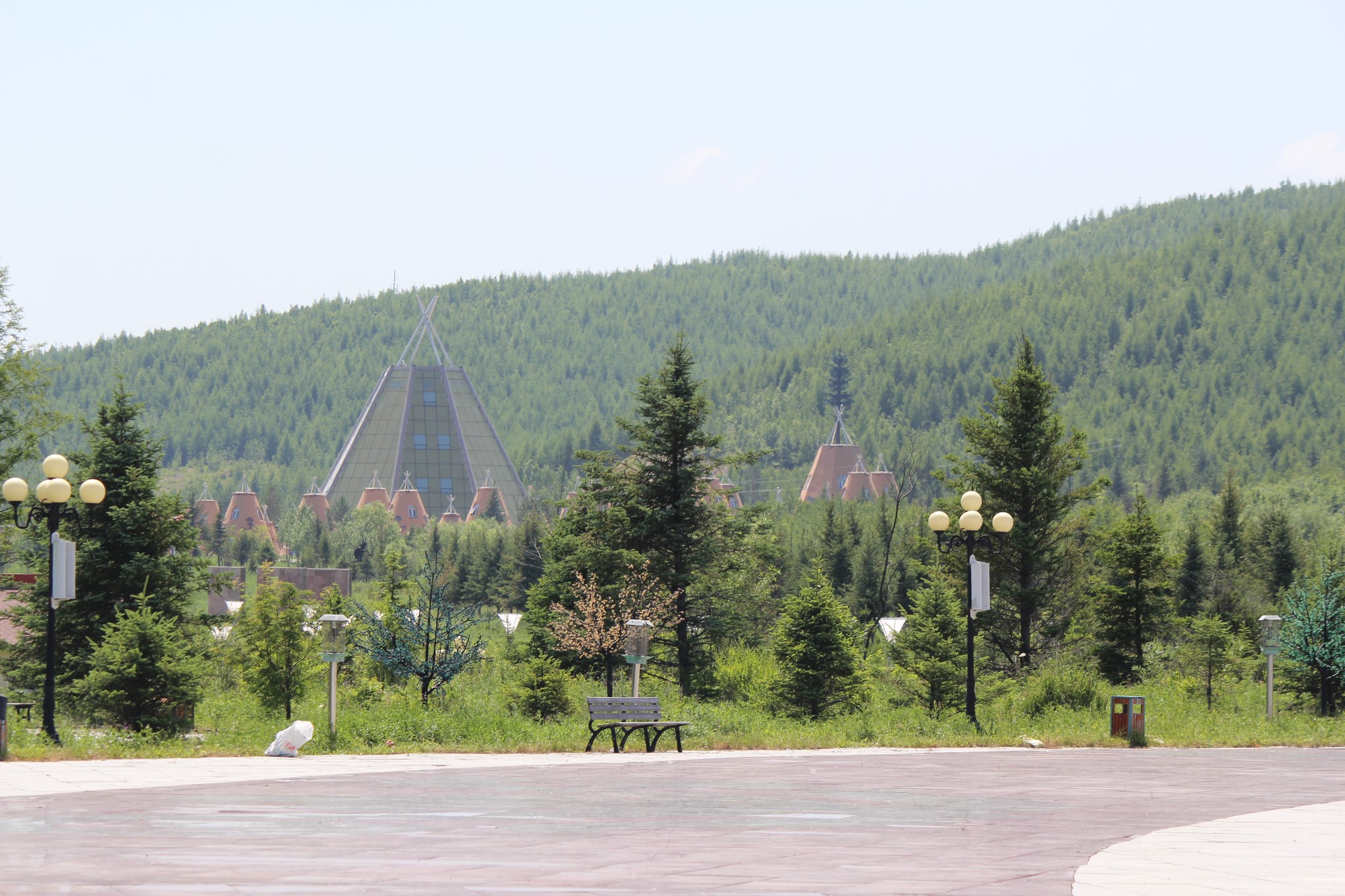 经过一夜的劳顿,上午在酒店休息,下午游览位于加格达奇北侧的北山森林公园。沿公园道路拾阶而上,可以鸟瞰整个城市。山上有铁道兵纪念碑、电视塔、绿月桥等景物。公园游人寥寥无几,倒是清静。原以为在这森林城市可品尝到山珍,也令人失望。好在当地人说到阿里河可以吃到山里的野味。心里上得到些许安慰。