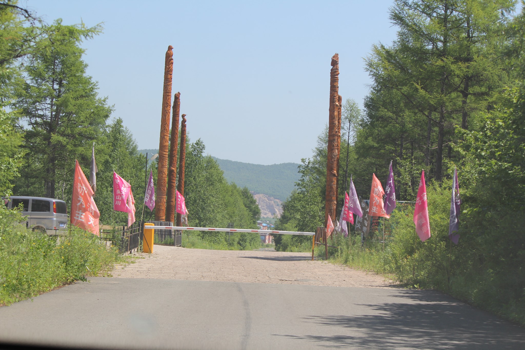 6月 22日用完早餐,我们离开加格达奇,打的前往距加格达奇40多公里的阿里河镇。阿里河镇是内蒙古自治区鄂伦春自治旗政府所在地。属于呼伦贝尔市管辖。阿里河镇相当于内地的县城。不到一小时我们就抵达了阿里河。安顿好住处,我们随即打车前往阿里河嘎仙洞游览。
