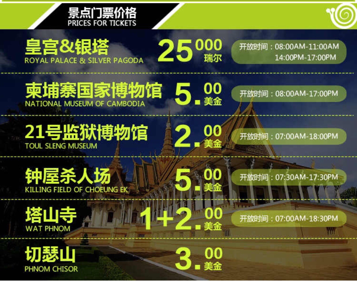 景点门票价格仅供参考,值得一提的是金边许多景区都有便携讲解机,可以提供中文讲解。如果时间充裕的话听听特别好,像讲故事一样很有意思。