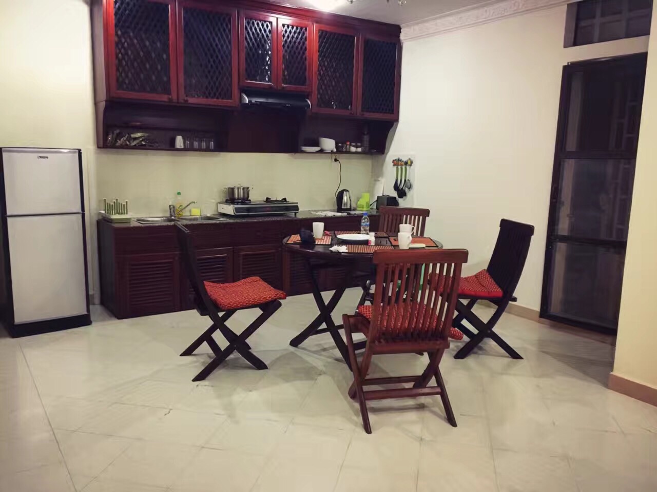 这次因为带着家人一起游玩,因而在暹粒预订了一套两室两厅的公寓。原本打算可以自己做些可口饭菜,可是柬埔寨的物价太贵了,而且果蔬看着也不是很新鲜诱人的样子。地处热带国家,它的许多水果象芒果之类都是从泰国进口的,可能跟他的生产力低有关系吧,平常的鸡蛋价格是国内的两倍。真是人算不如天算。