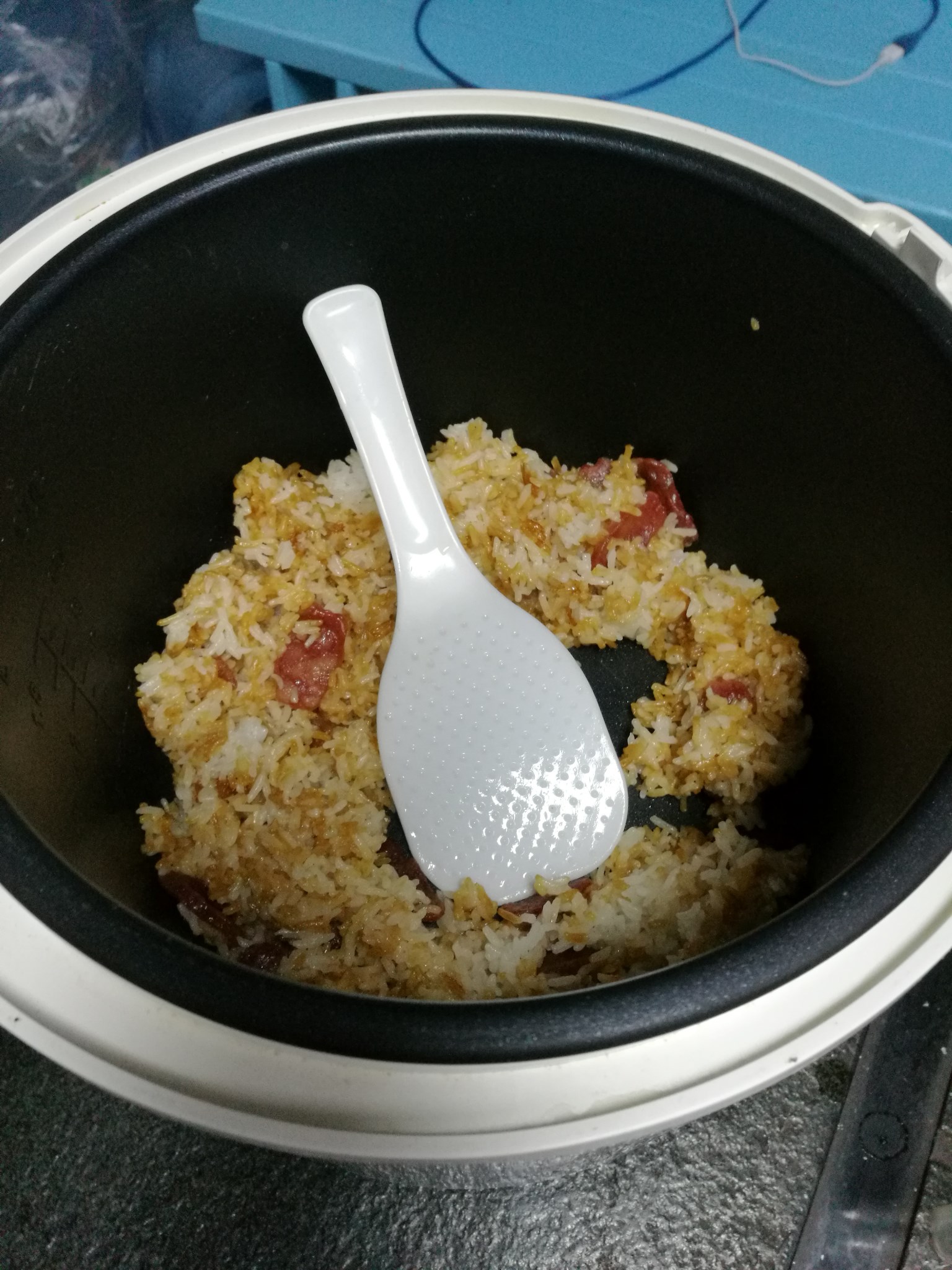 看见茶几上仅一个电饭煲的时候,我的内心一开始是拒绝的。但揭开锅盖闻到那一阵煲仔饭的香味时,我心里又原谅了他。果然是“简单的一餐”,连个汤也没有,当然,蹭饭的没有权利提要求 。本来出门前我还特地带上钱,觉着占人家便宜不太好,现在倒也心安了。但是我边听海浪边吃海鲜大餐的梦想破灭了……