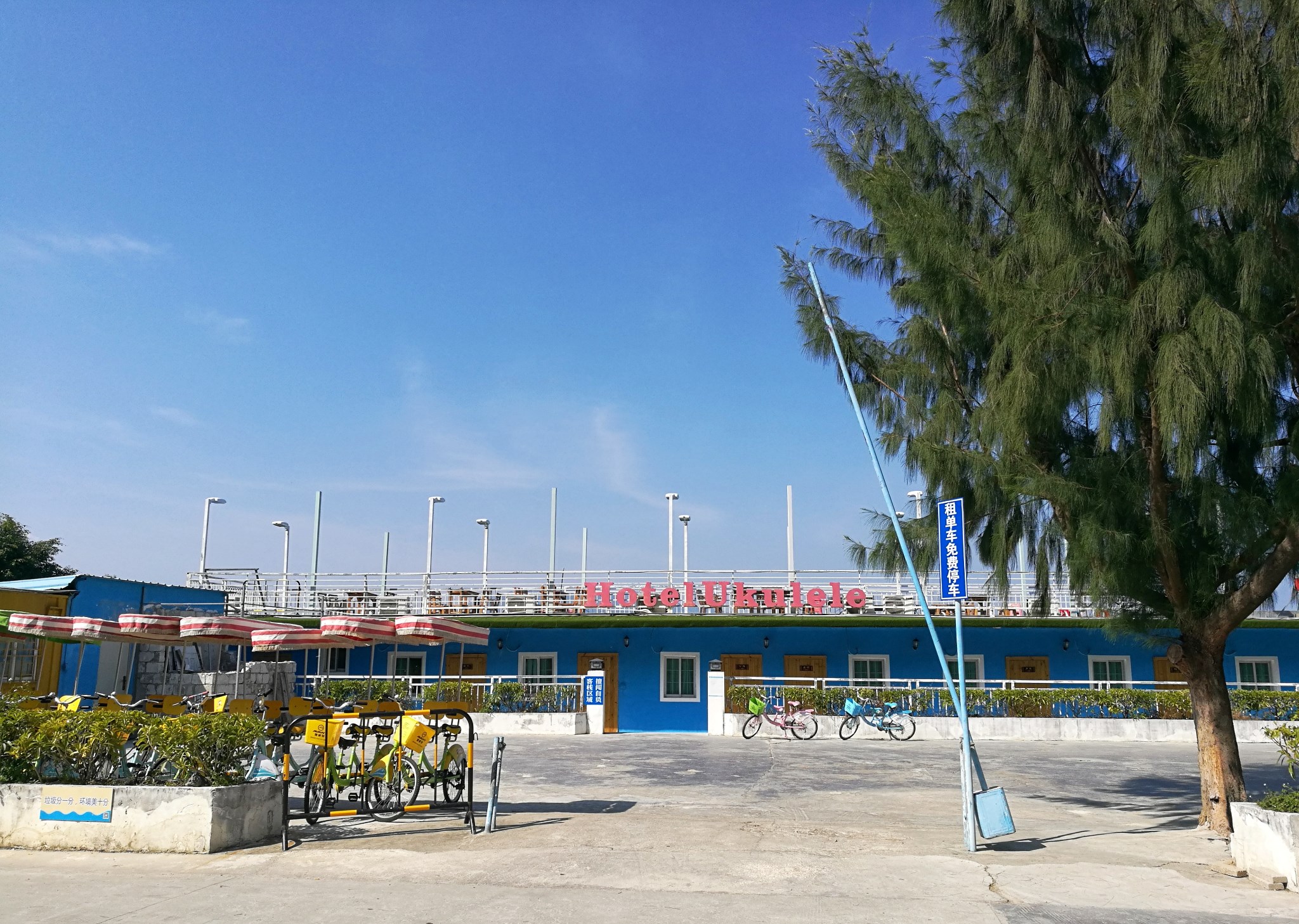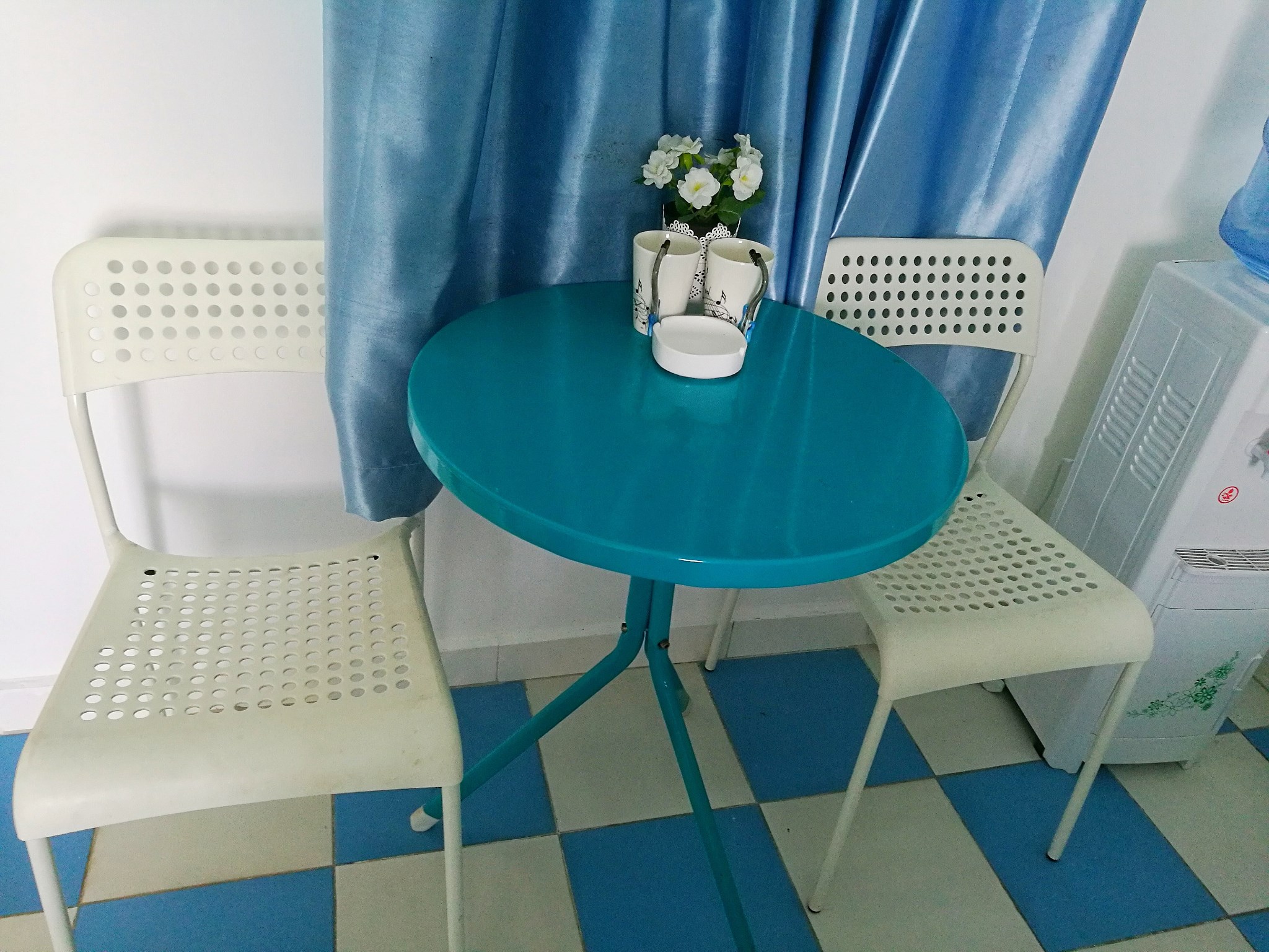 为了轻装上阵,压缩一切行李,终于一改风格地仅一个背包搞定,还厚着脸皮让同事将我的电脑先带回上海。于是,周五的下午,司机将我送到了这个位于海边的客栈,蓝色外墙在阳光下很是醒目。