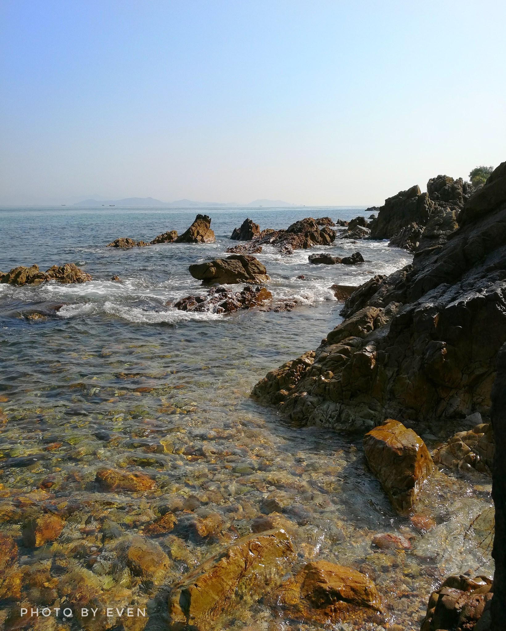 海水很清澈,水下的礁石清晰可见,并未感觉海风中有浓重的腥味。