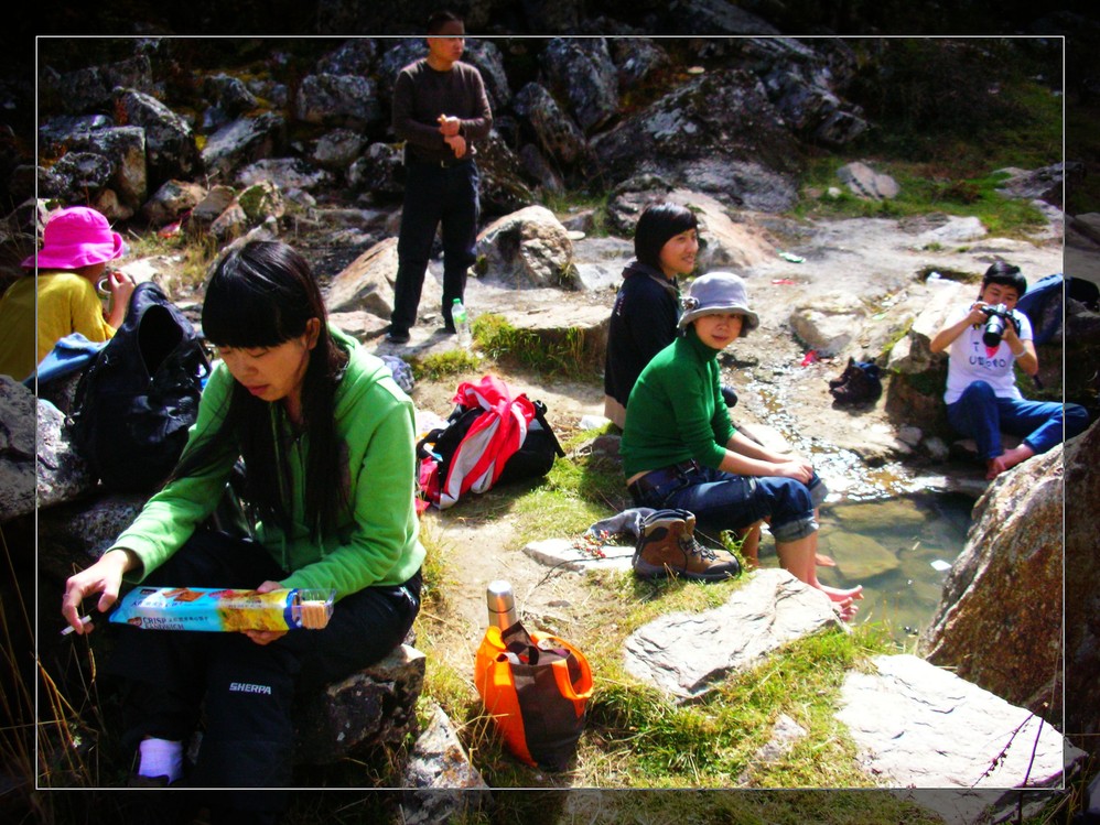 中午安顿下来,出发去珍珠海 。从亚丁 村出来有条近路下山,比开车快,直接到儱侗坝景区入口。