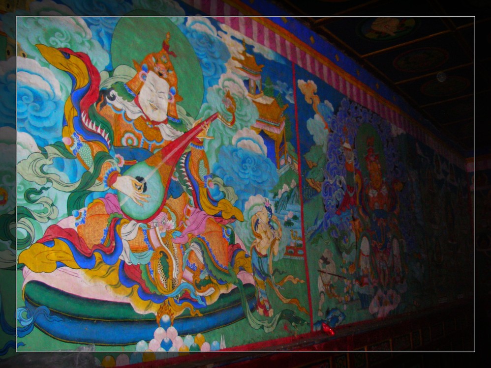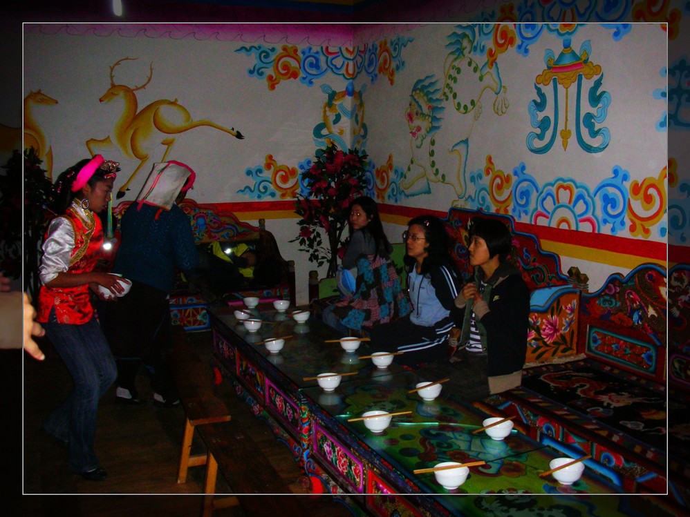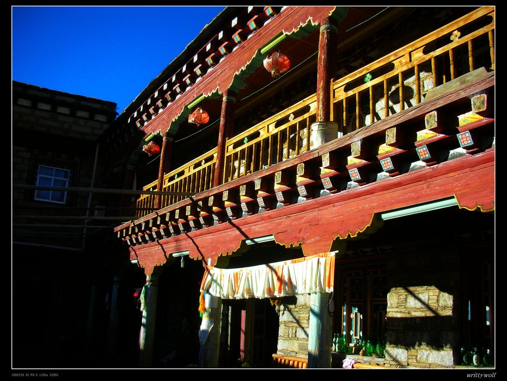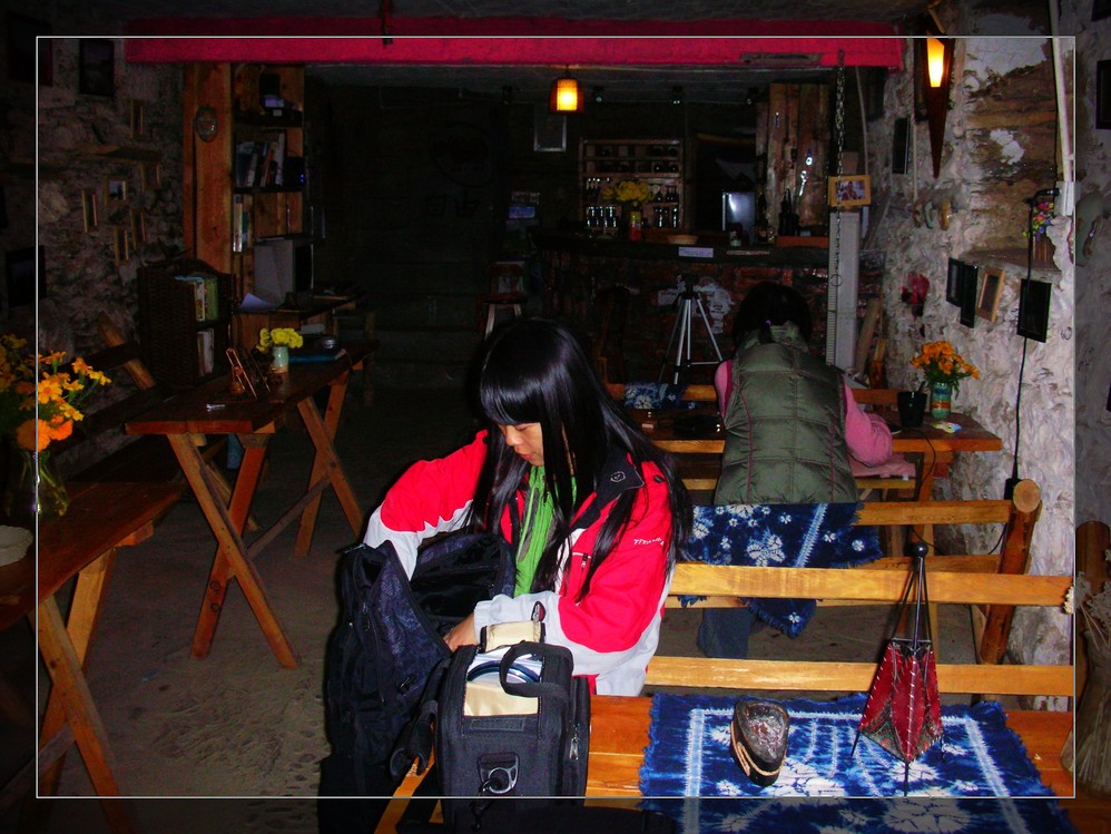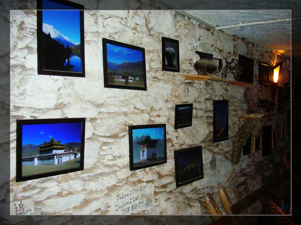 客栈的地下是一个酒吧,老板是一位摄影爱好者,辞了工作来到这里开酒吧就是为了有时间在藏区搞创作,墙上挂满了老板自己的作品,这是一位对生活很洒脱的女人。我很羡慕,但是没有勇气去追自己的梦。
