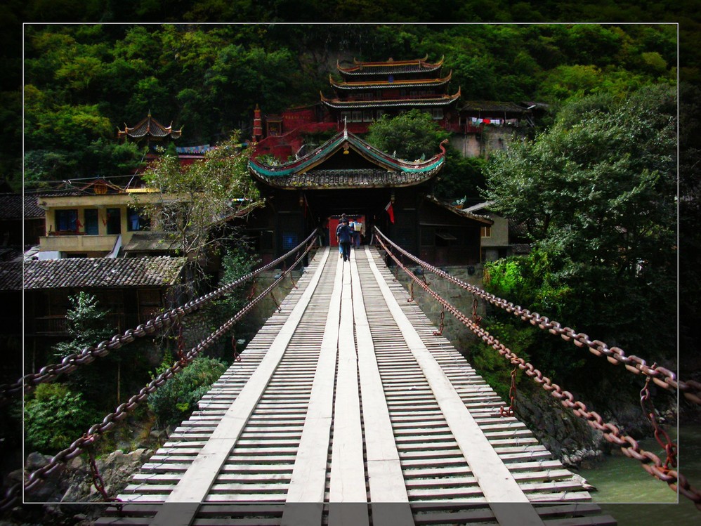 铁索桥却变得比战争年代温 柔许多