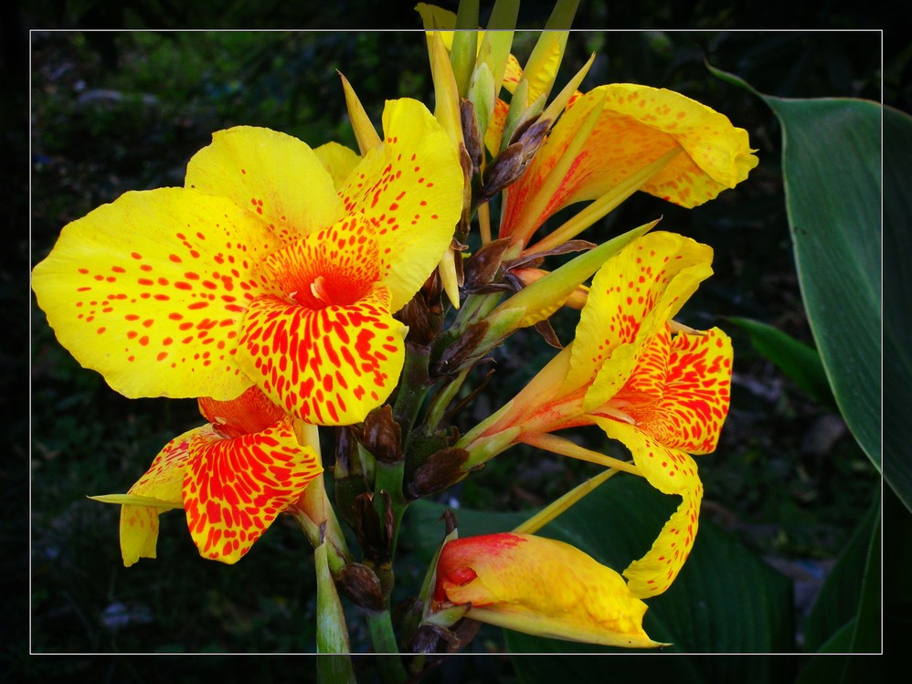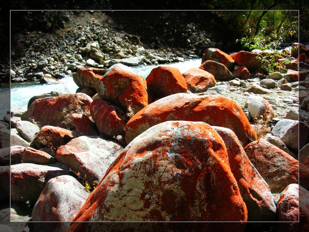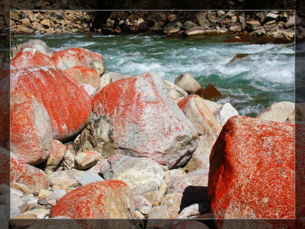 由于修水 电站炸山,公路经常封闭,在一个叫姑咱的地方,在满布碎石粉尘环境中竟然还盛开着艳丽的美人蕉