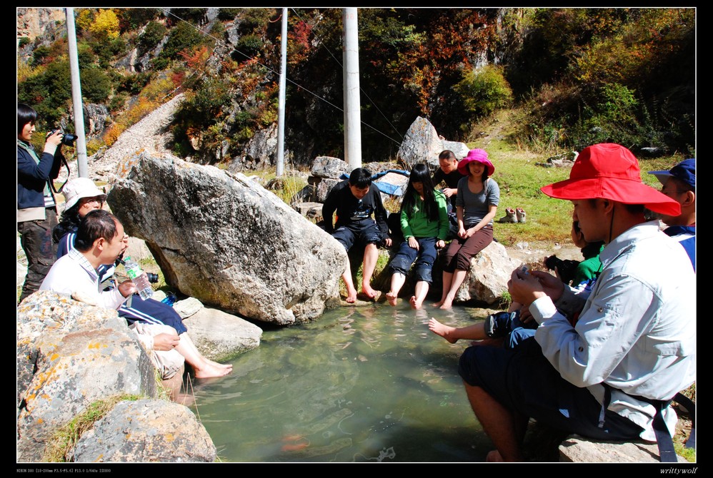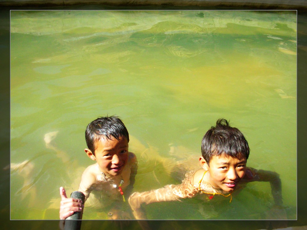 路边随处可见的温泉更是令人流连忘返。温泉温度很高,有很多附近的藏民举家来这里洗澡。我们就遇到了徳济一家。